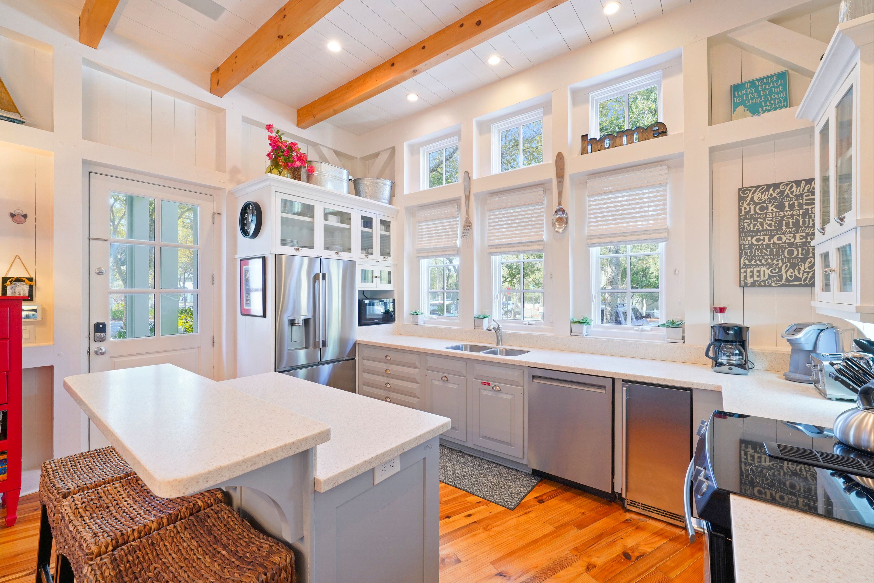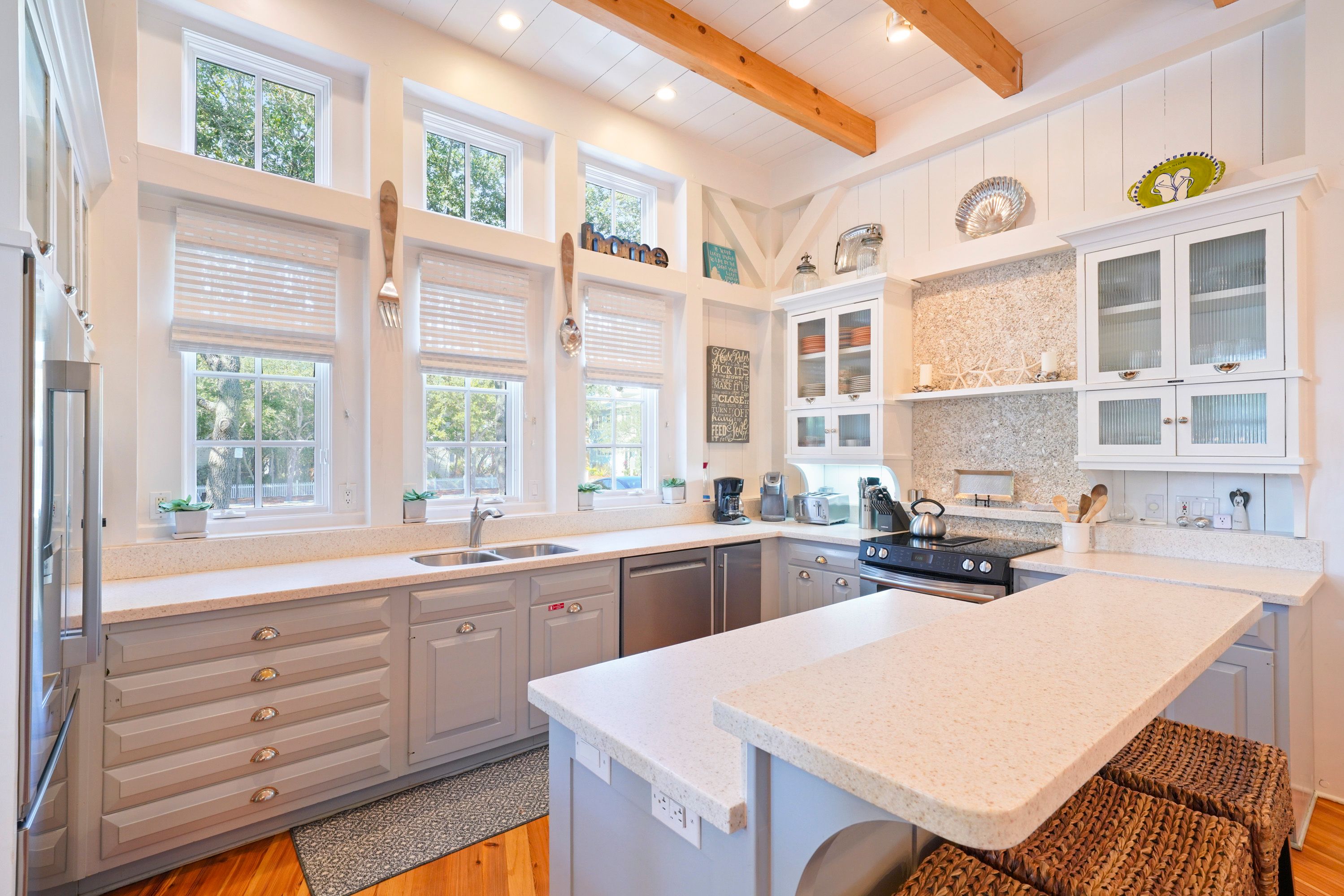 RENOVATED KITCHEN VIEW WITH BARSTOOL SEATING FOR 3
