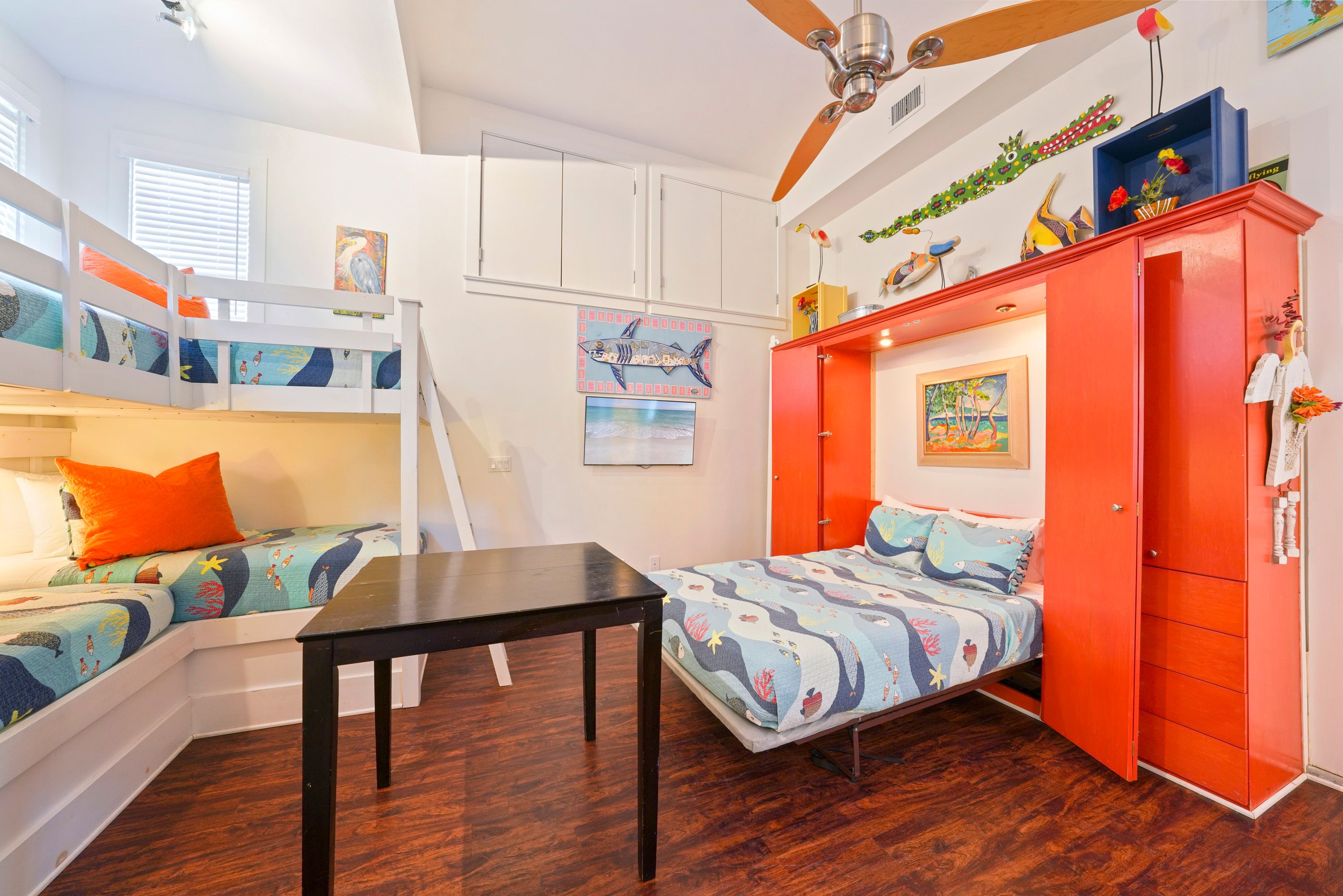 FIRST BEDROOM DOWN, BUNK ROOM W/4 TWINS & FULL MURPHY BED