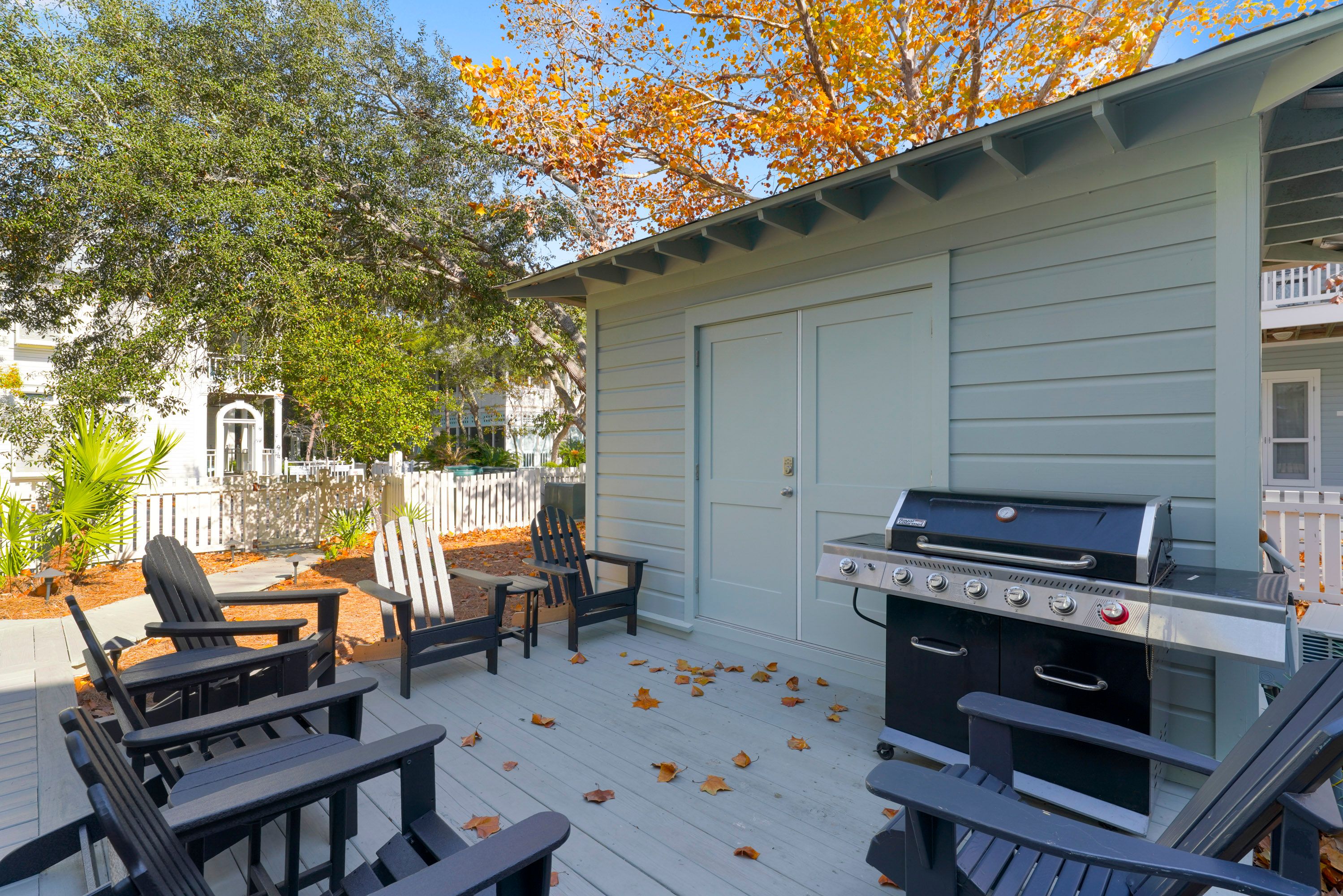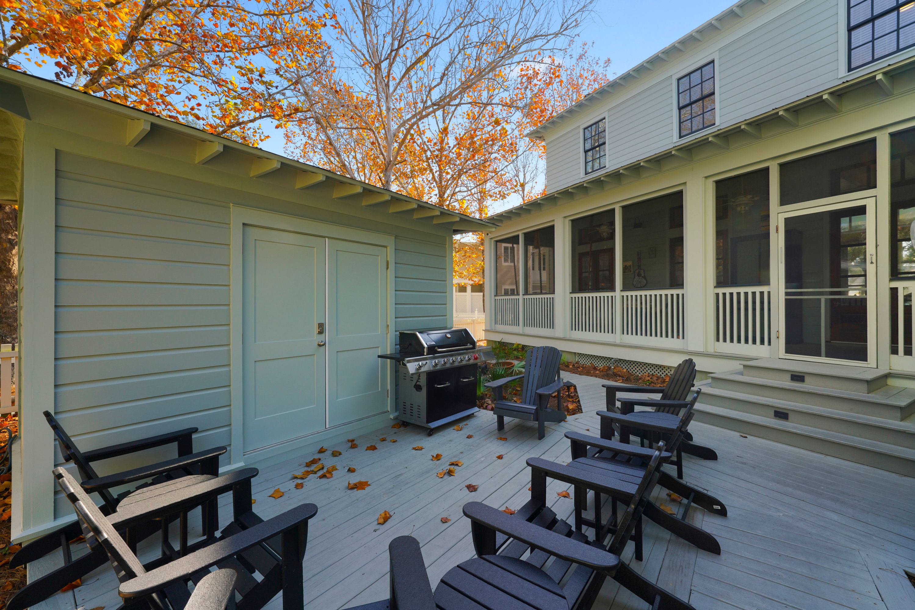 OUTDOOR DECK W/ADIRONDACK SEATING & GAS GRILL OFF PORCH