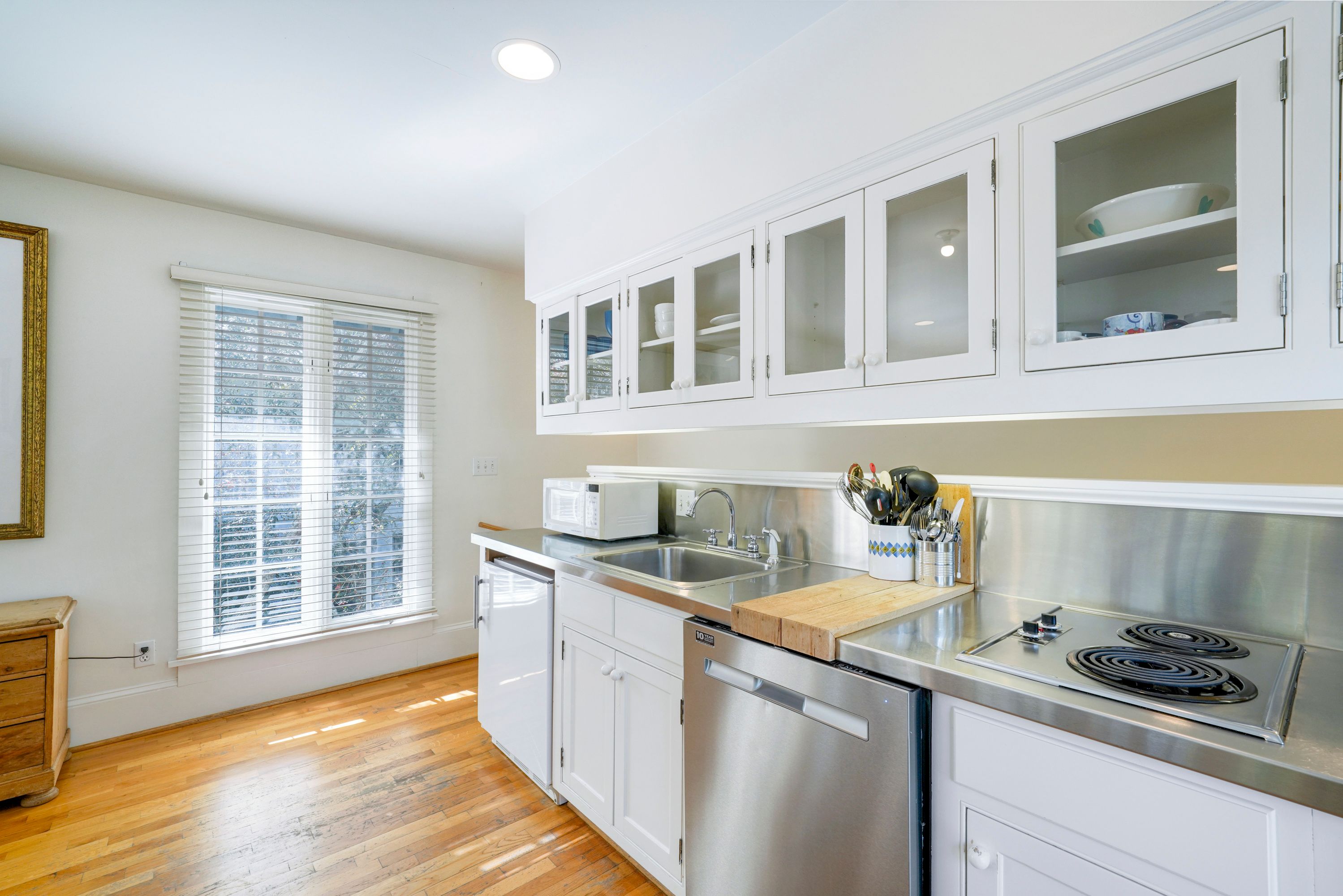 KITCHEN AREA W/COMPACT FRIDGE, MICROWAVE, & DISHWASHER