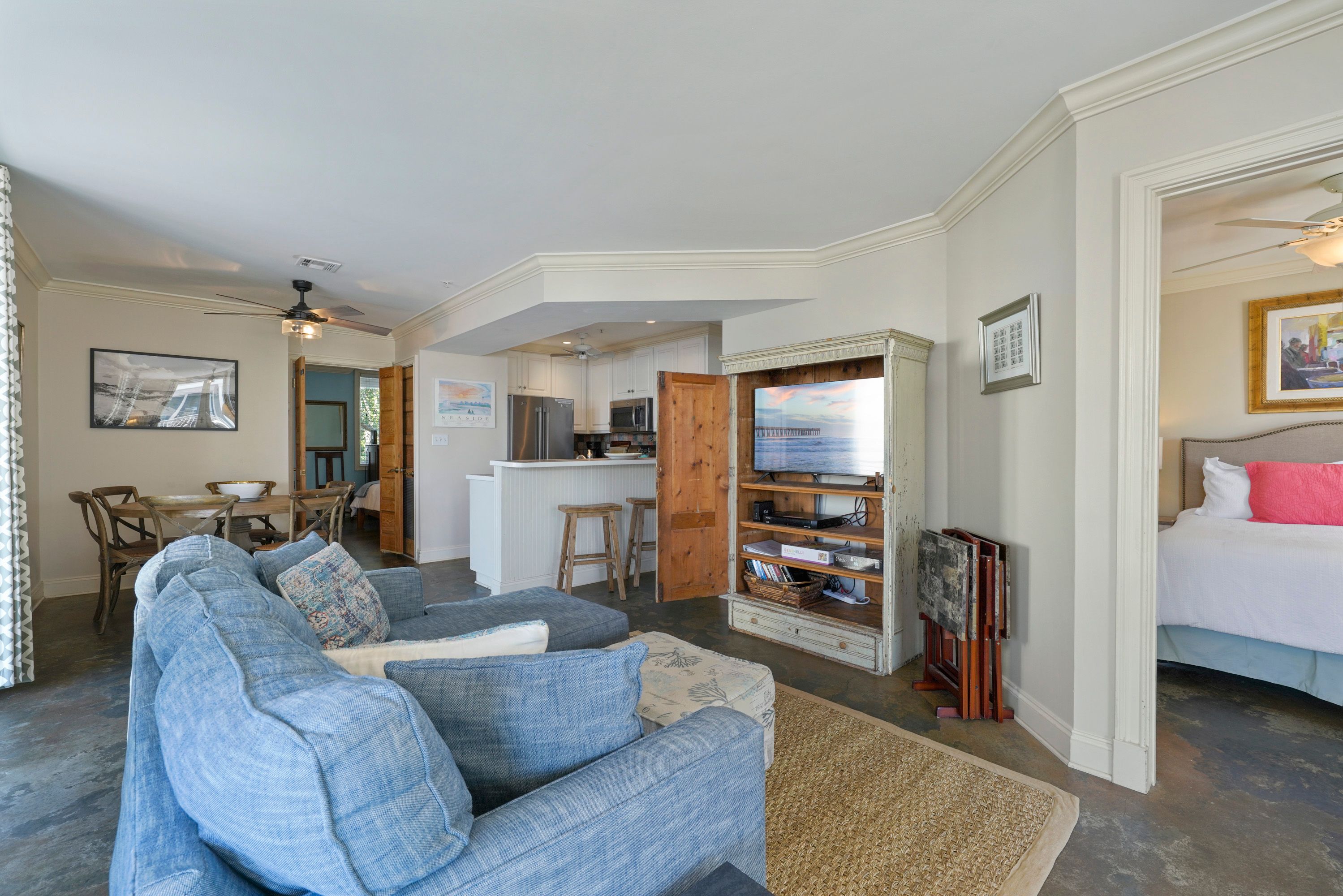 OPEN LIVING WITH FLATSCREEN TELEVISION