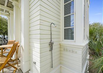 OUTDOOR SHOWER ON SIDE OF COTTAGE, NEXT TO PORCH