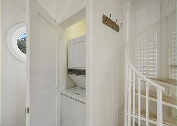 WASHER AND DRYER NEXT TO STAIRCASE ON FIRST LEVEL