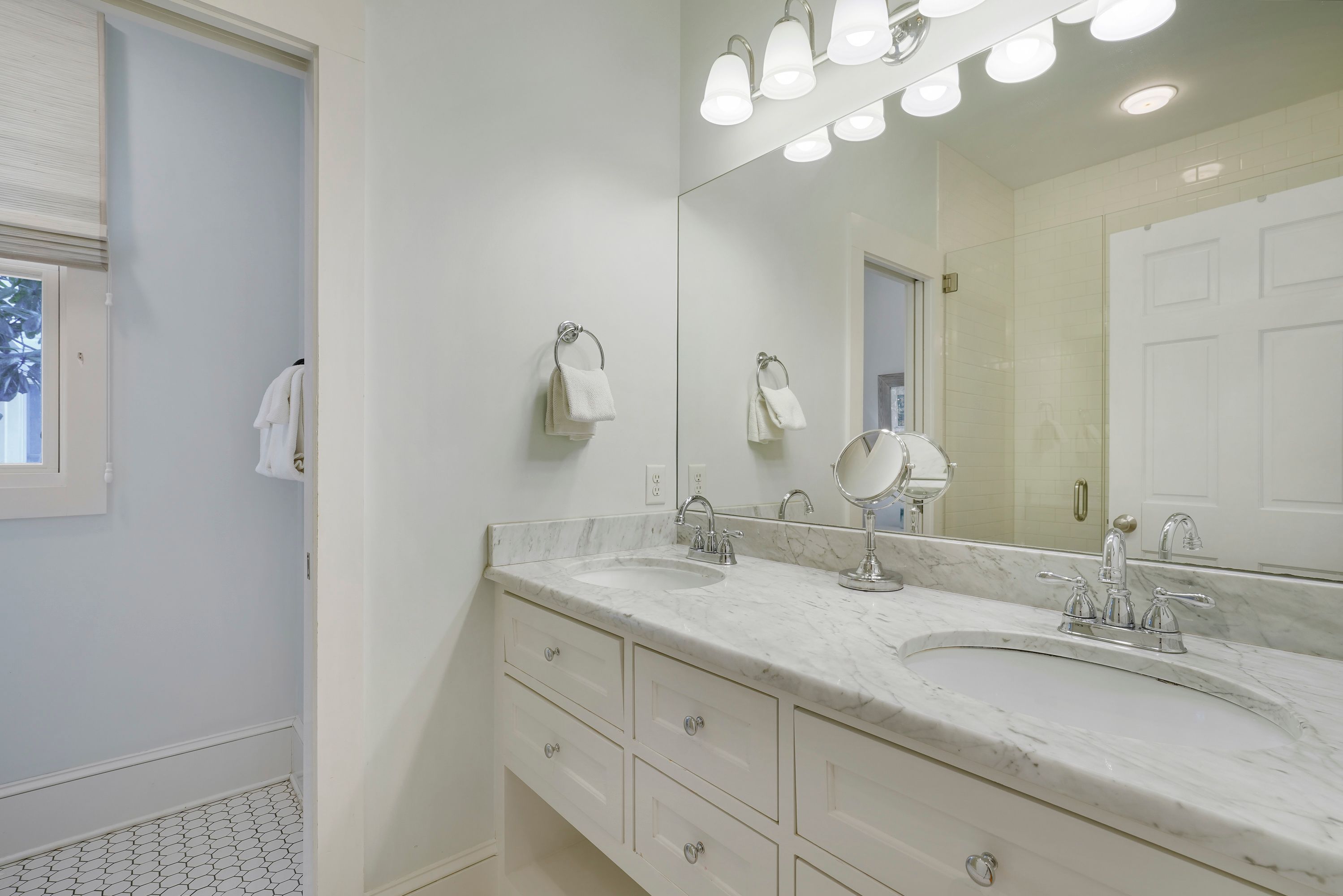 RENOVATED MARBLE MASTER BATH WITH DUAL VANITIES