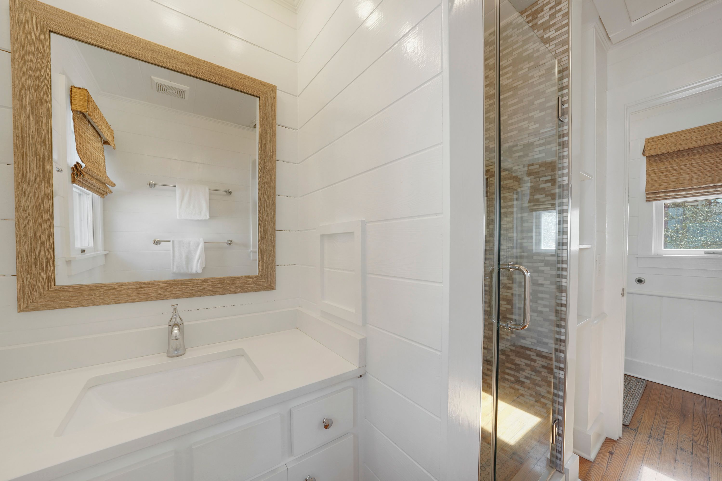 RENOVATED FULL BATH, SINGLE VANITY & GLASS ENCLOSED SHOWER