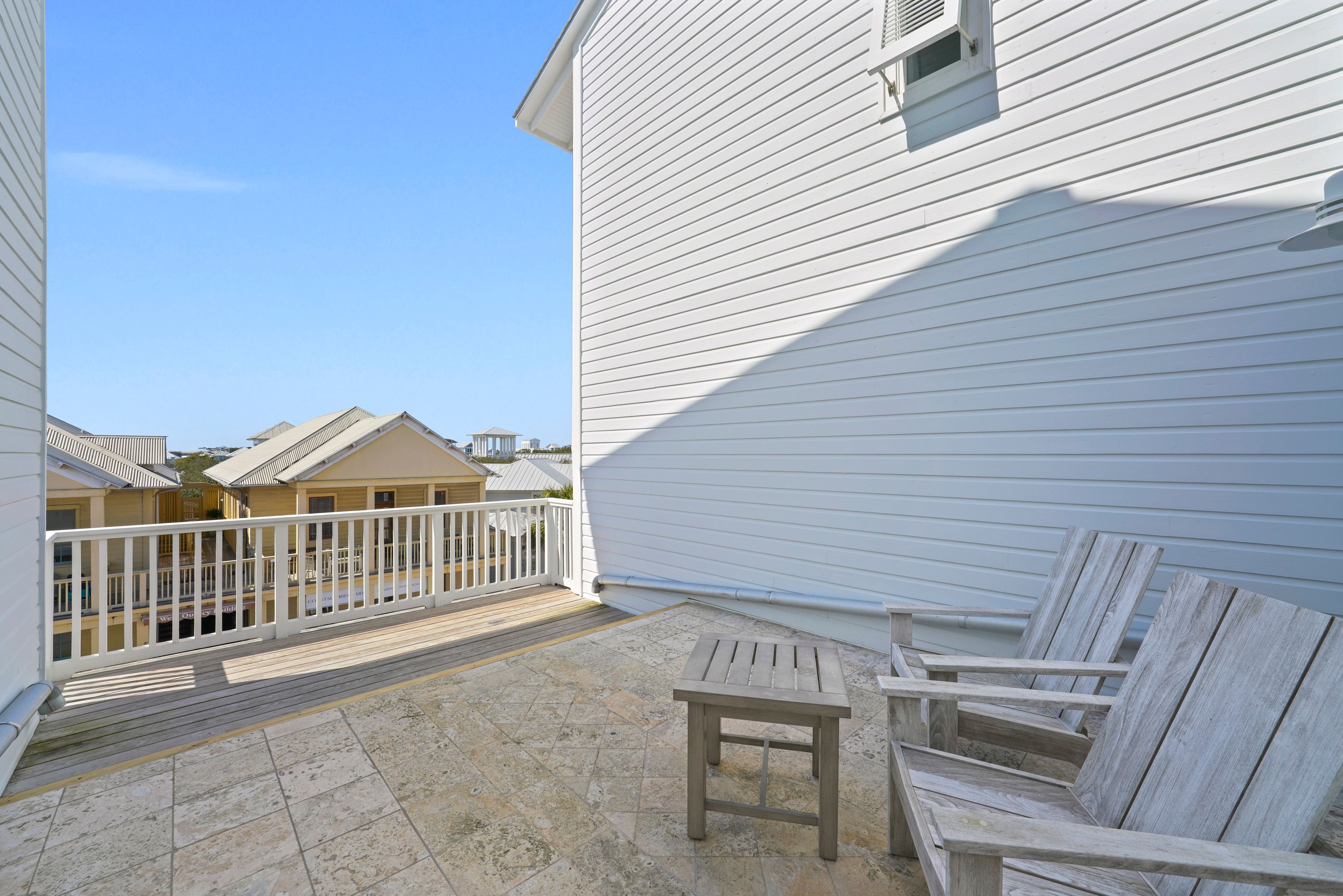 PRIVATE PATIO DECK WITH LOUNGE SEATING, OVERLOOKS COURTYARD