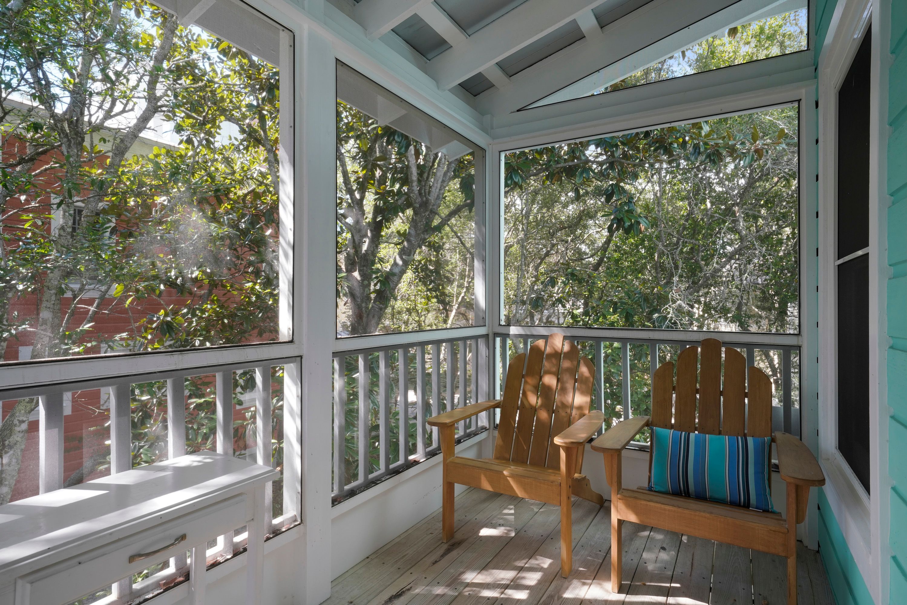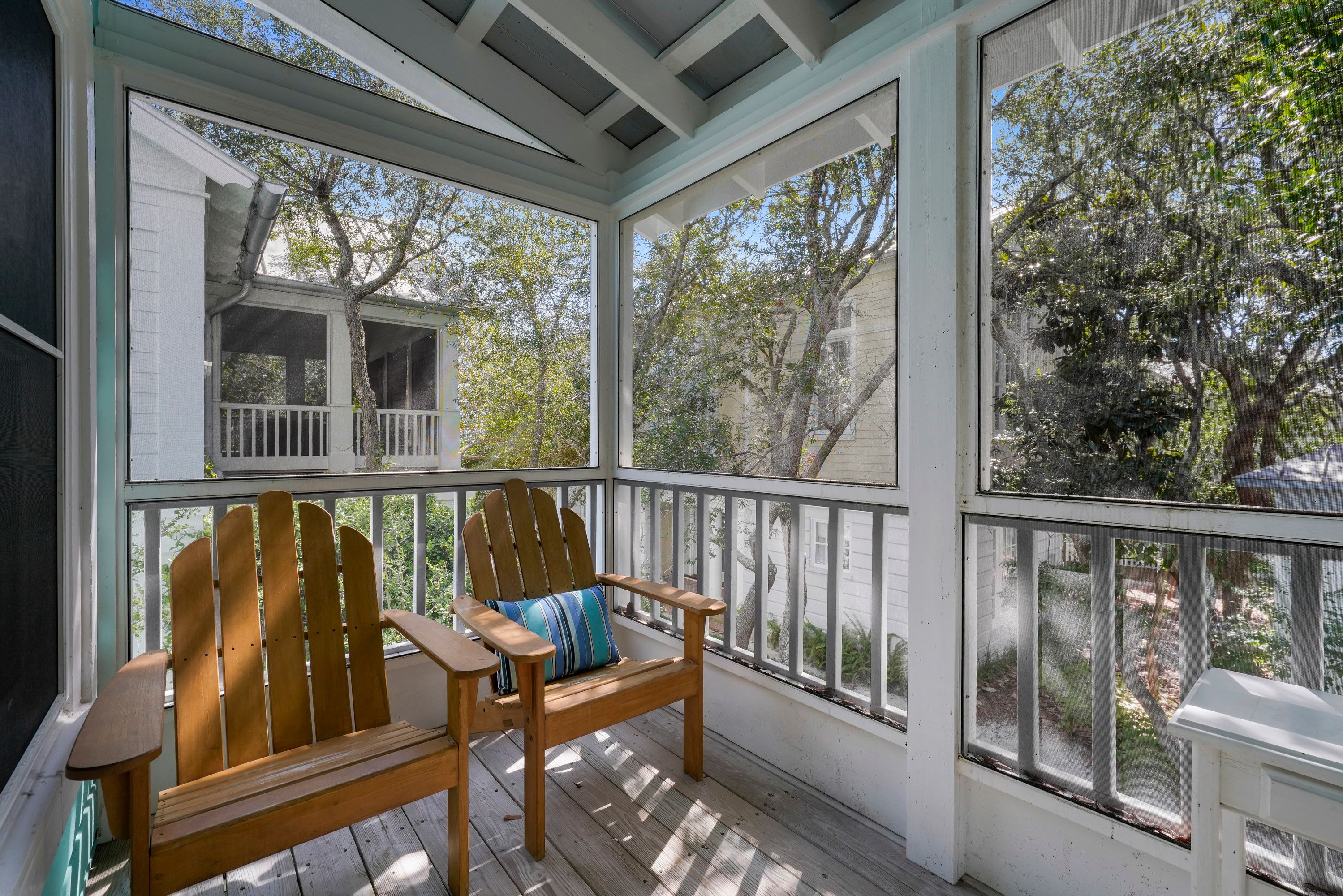 SCREENED OFF BALCONY OFF LIVING W/ADIRONDACK SEATING FOR 4