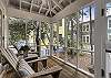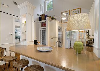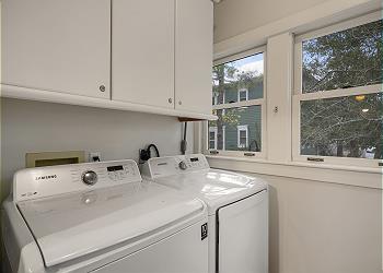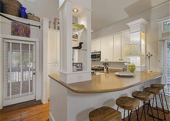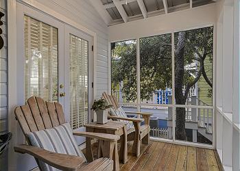 We loved this 2 bed/2 bath cottage located on quiet street but still close to main square. Main living room is large with two comfortable sofas. Screened porches on both front and back of house. Separate laundry room in back of kitchen. Kitchen is mid-sized with large subzero refrigerator.