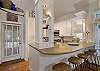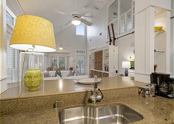 As guests arrive, they’ll be pleasantly welcomed by a coastal, screened-in front porch, featuring rocking chairs and outdoor dining for three. As they make their way into the home, they can discover an open floor plan. The interior is made up of an updated open kitchen that overlooks the living room so friends and family can stay connected and visit. The kitchen has breakfast bar seating for five and some top of line appliances and added benefits complete with a Bosch dishwasher, Gourmet Viking Dual fuel stainless stove, gourmet knives, a Keurig, a Nespresso Machine, and the coffee pods are even provided.