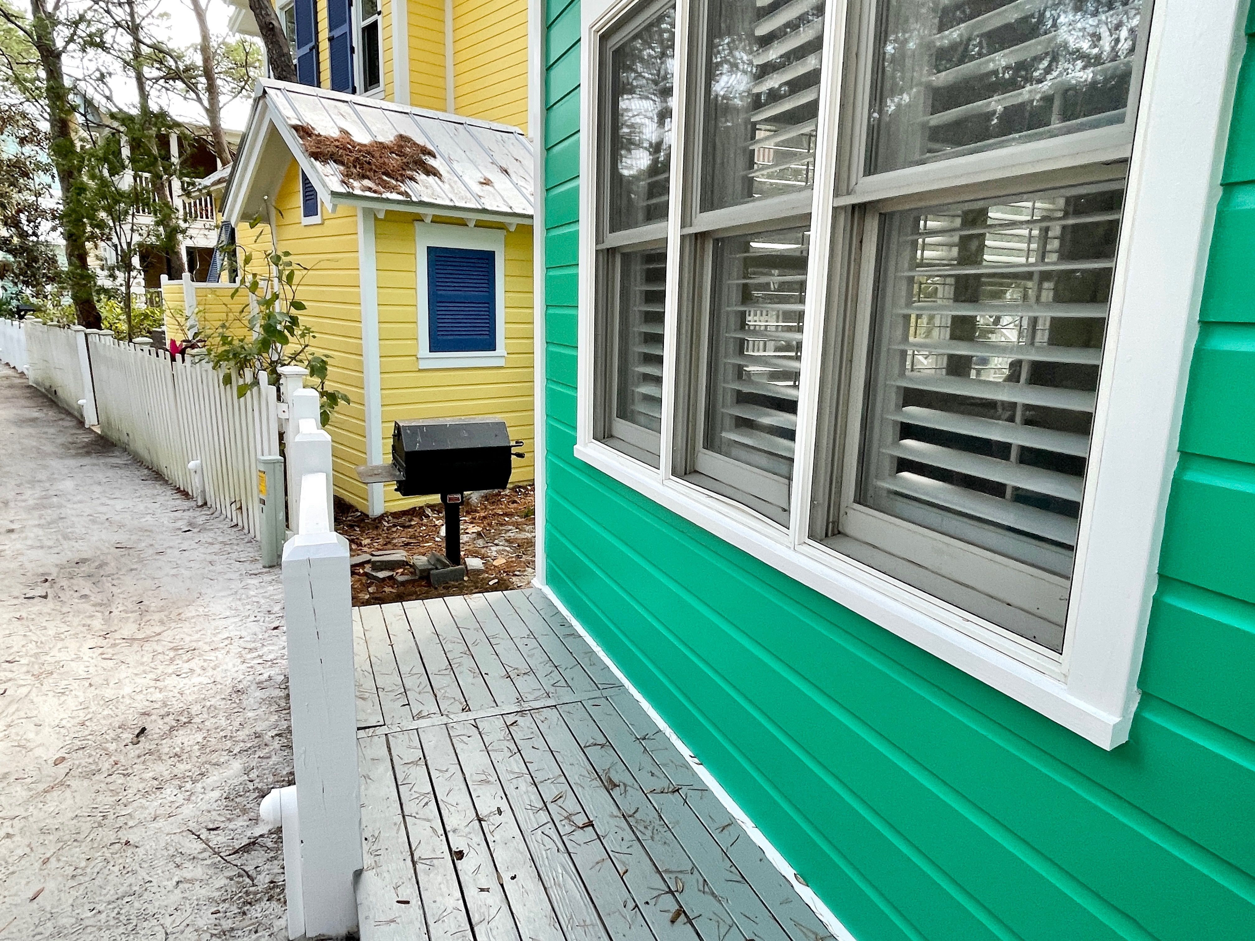 CHARCOAL GRILL OFF REAR DECK & BACK OF HOME