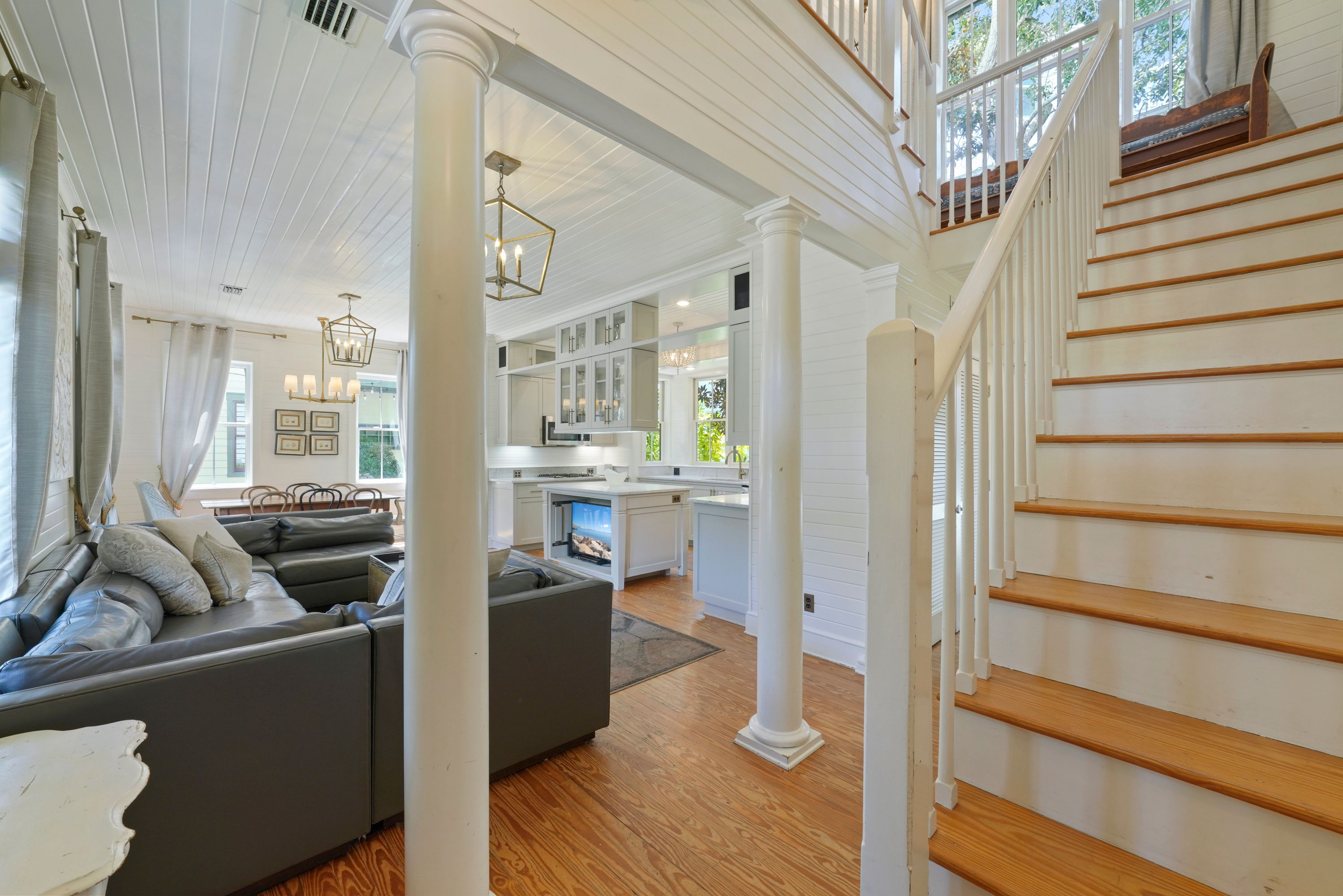 OPEN FIRST LEVEL WITH TASTEFUL DECOR AND HIGH CEILINGS