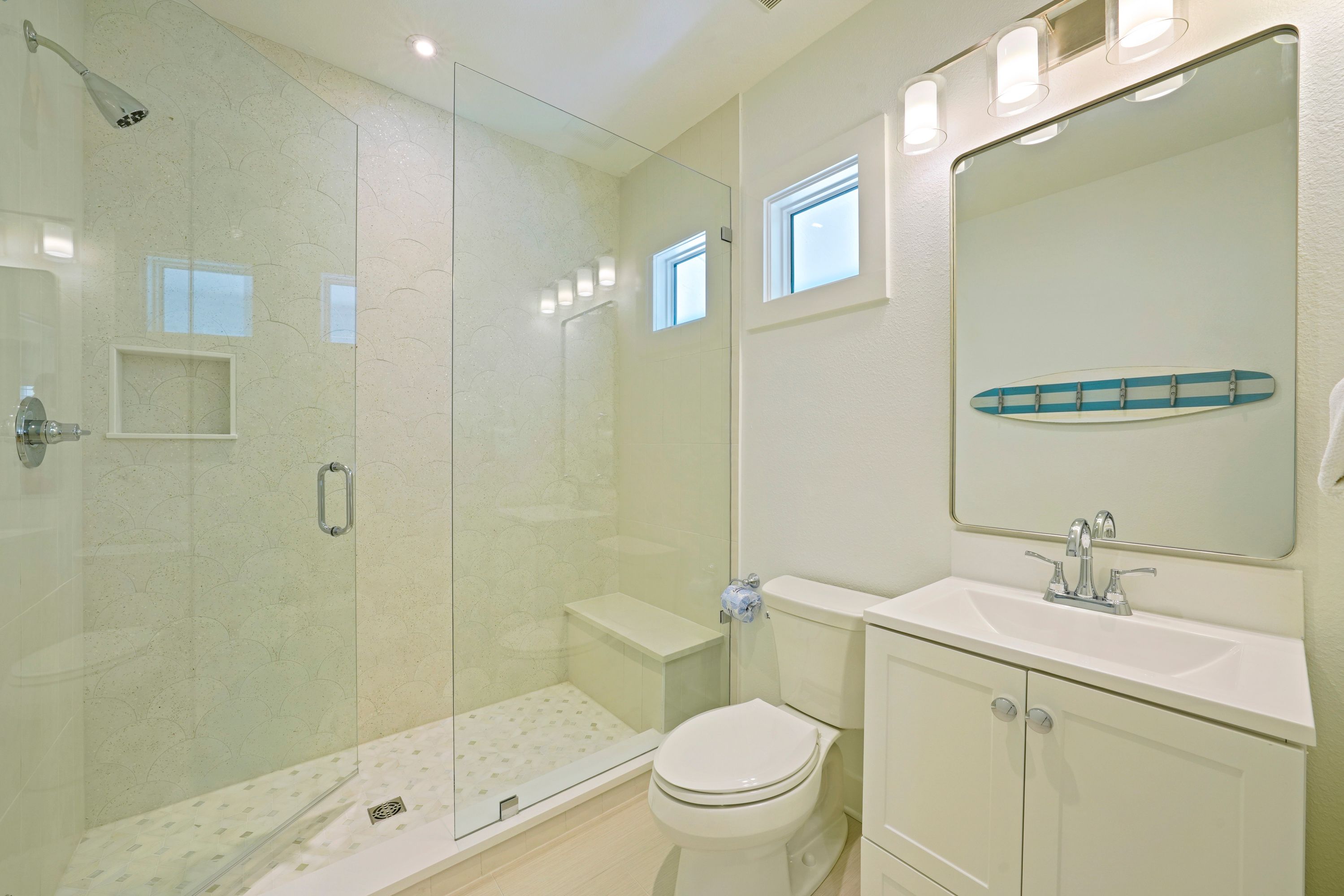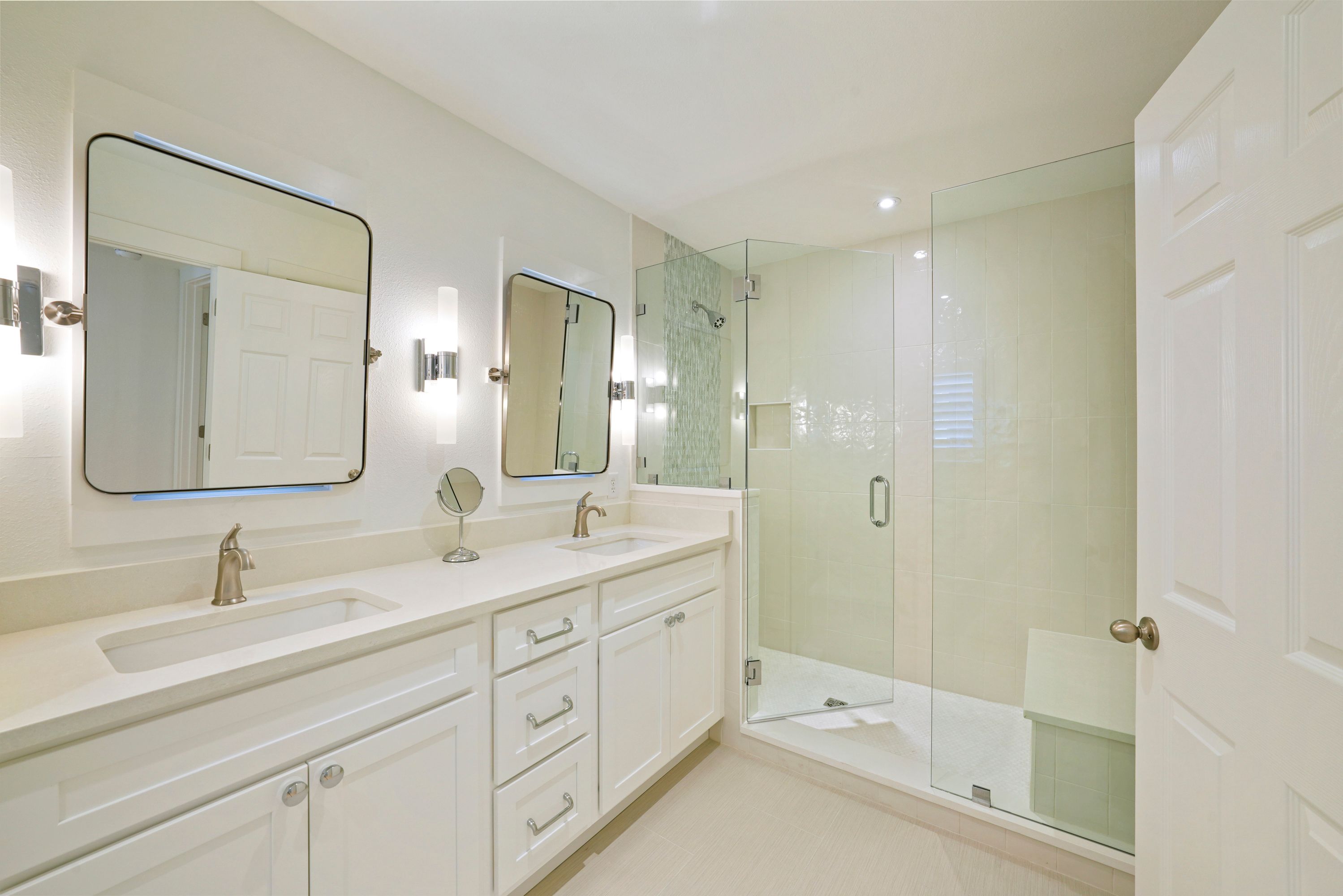 SHARED FULL BATH, DUAL VANITIES & GLASS ENCLOSED WALK IN SHOWER