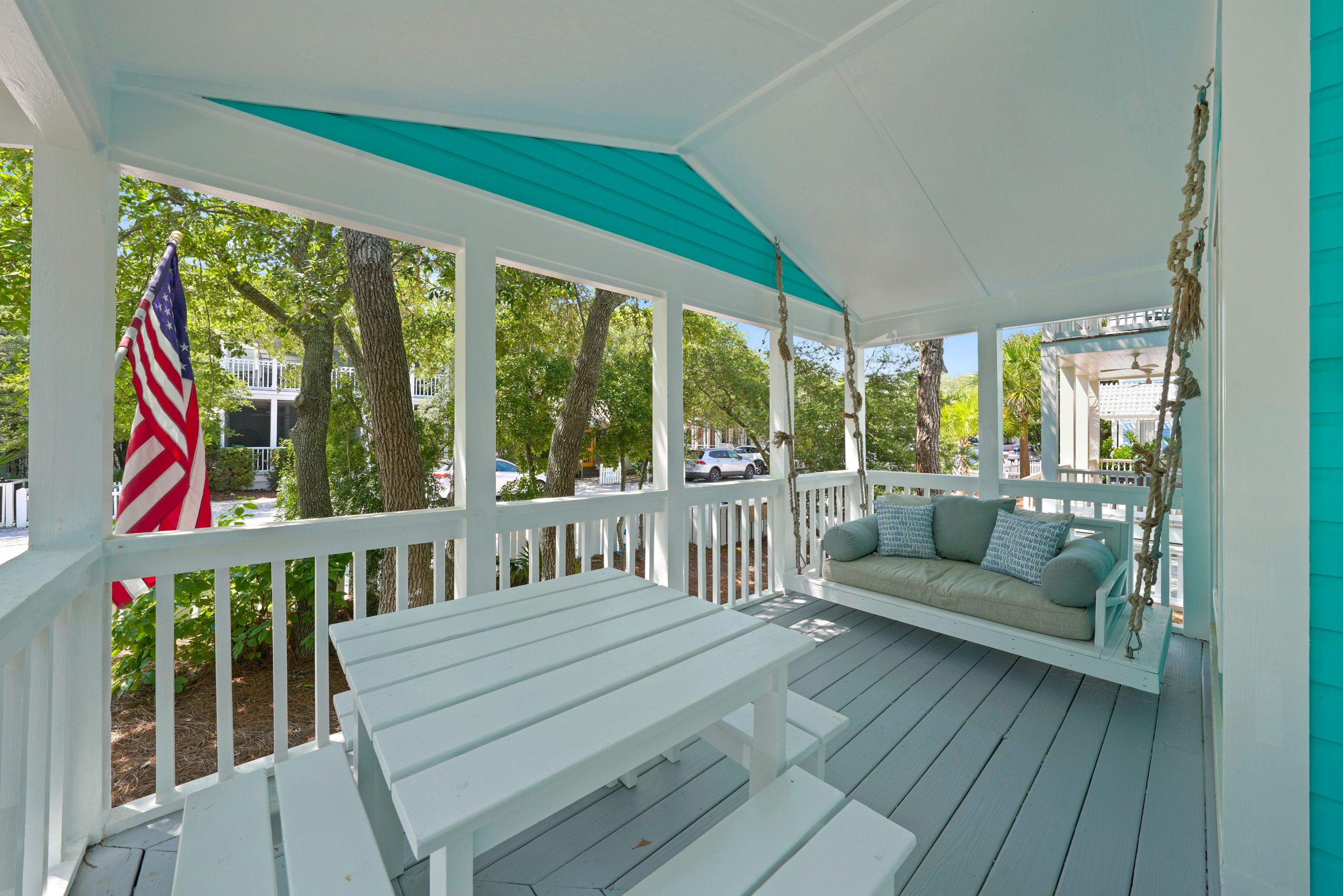 OPEN PORCH W PICNIC DINING AREA AND BED SWING