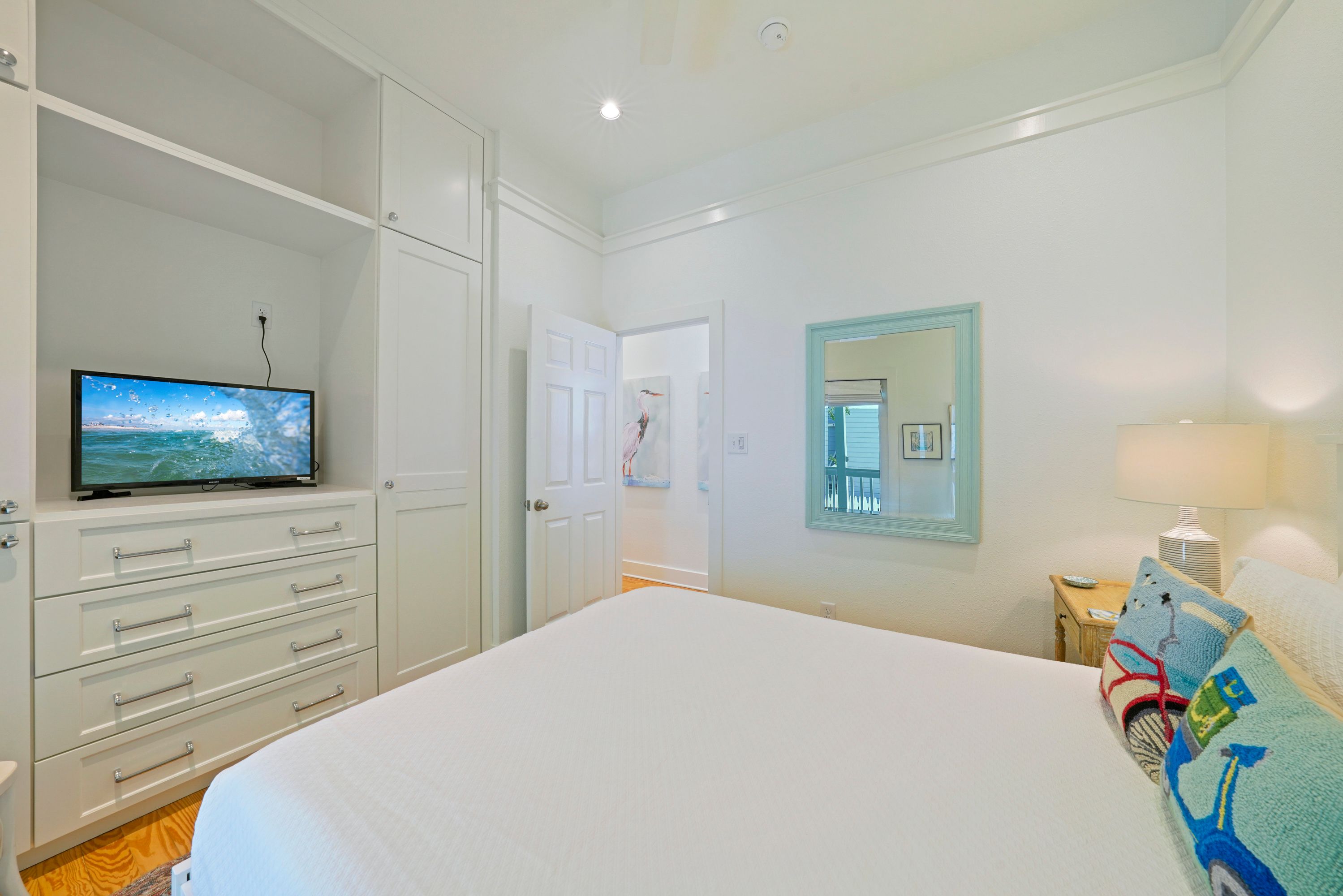QUEEN ROOM WITH DRESSER AND FLATSCREEN TV