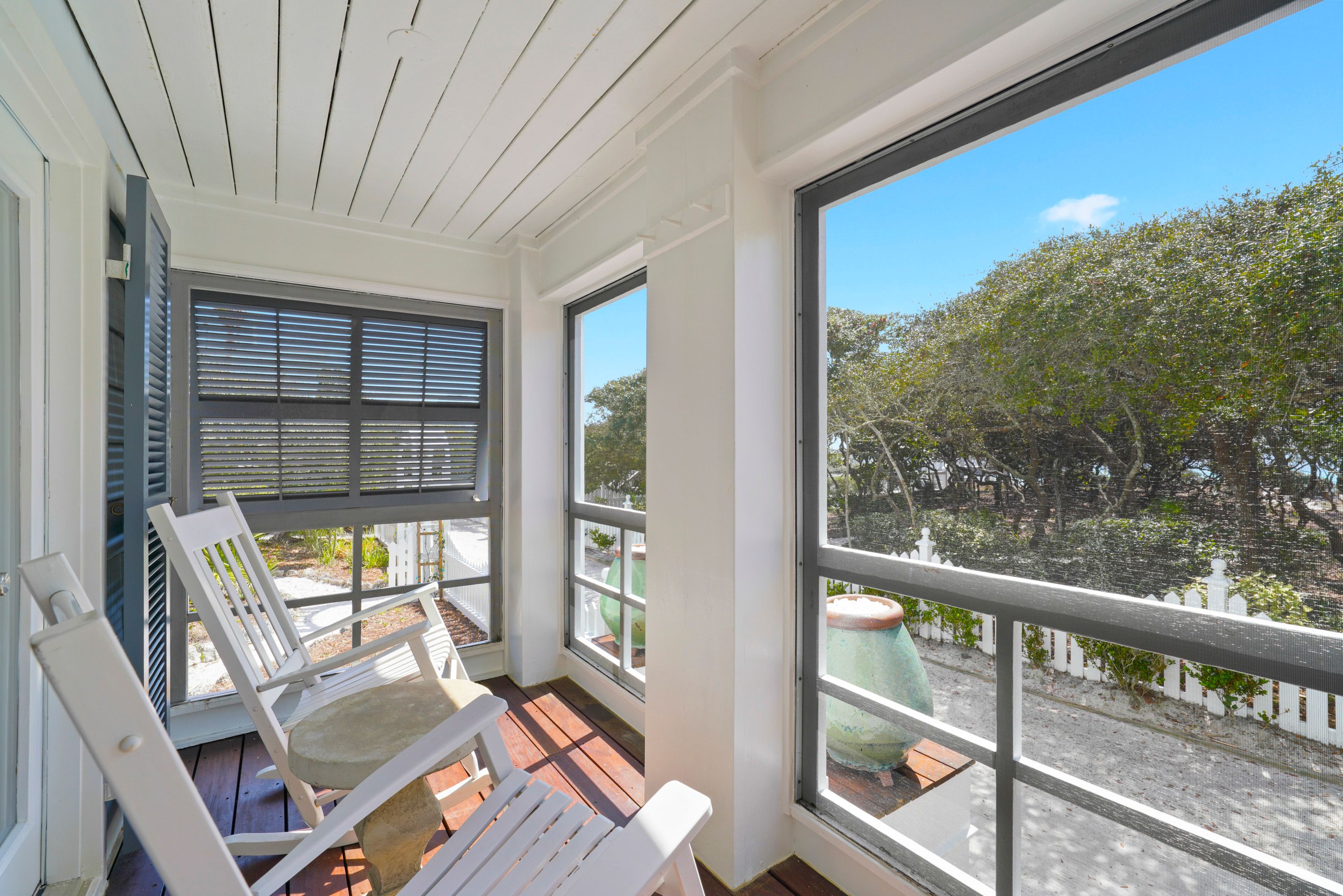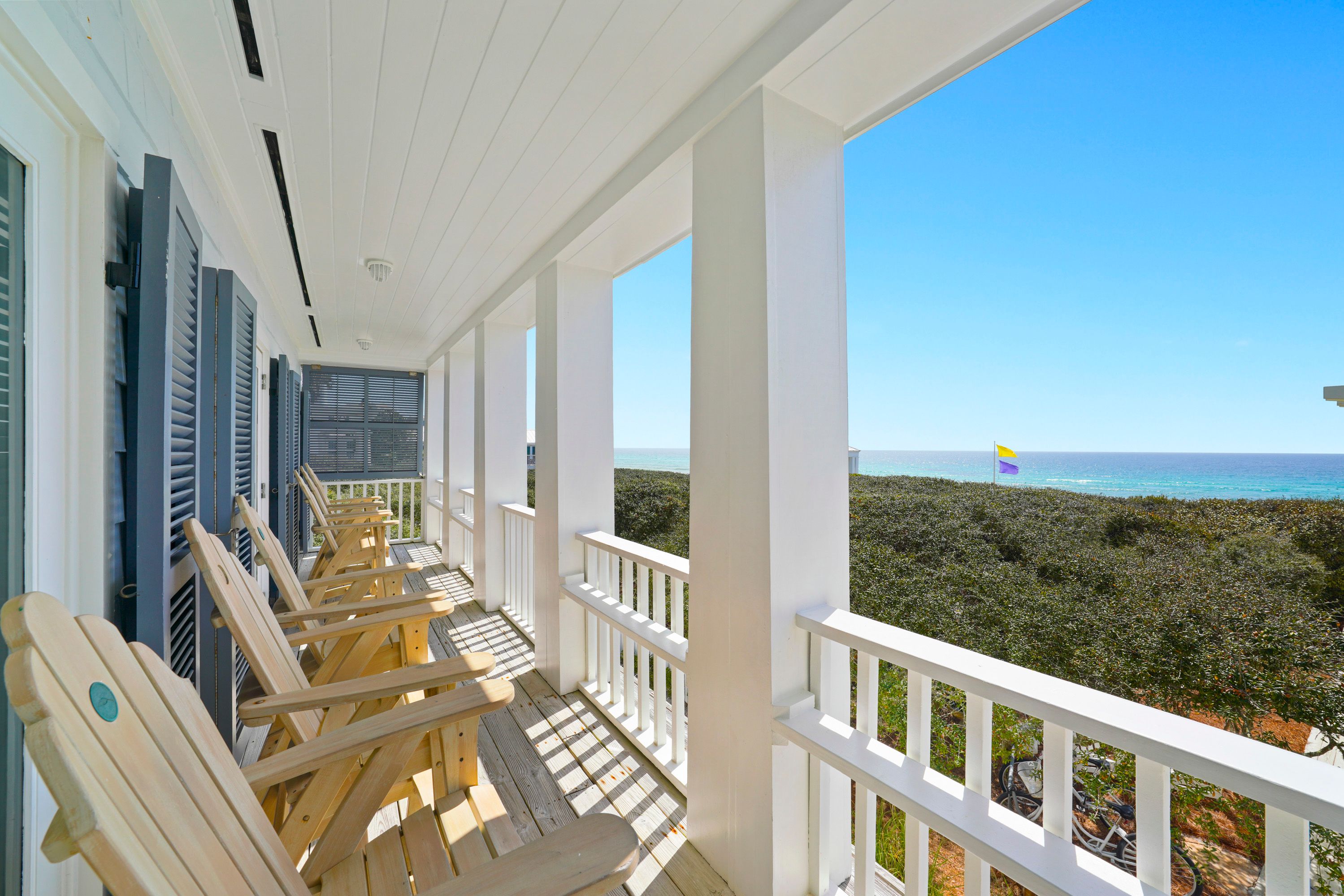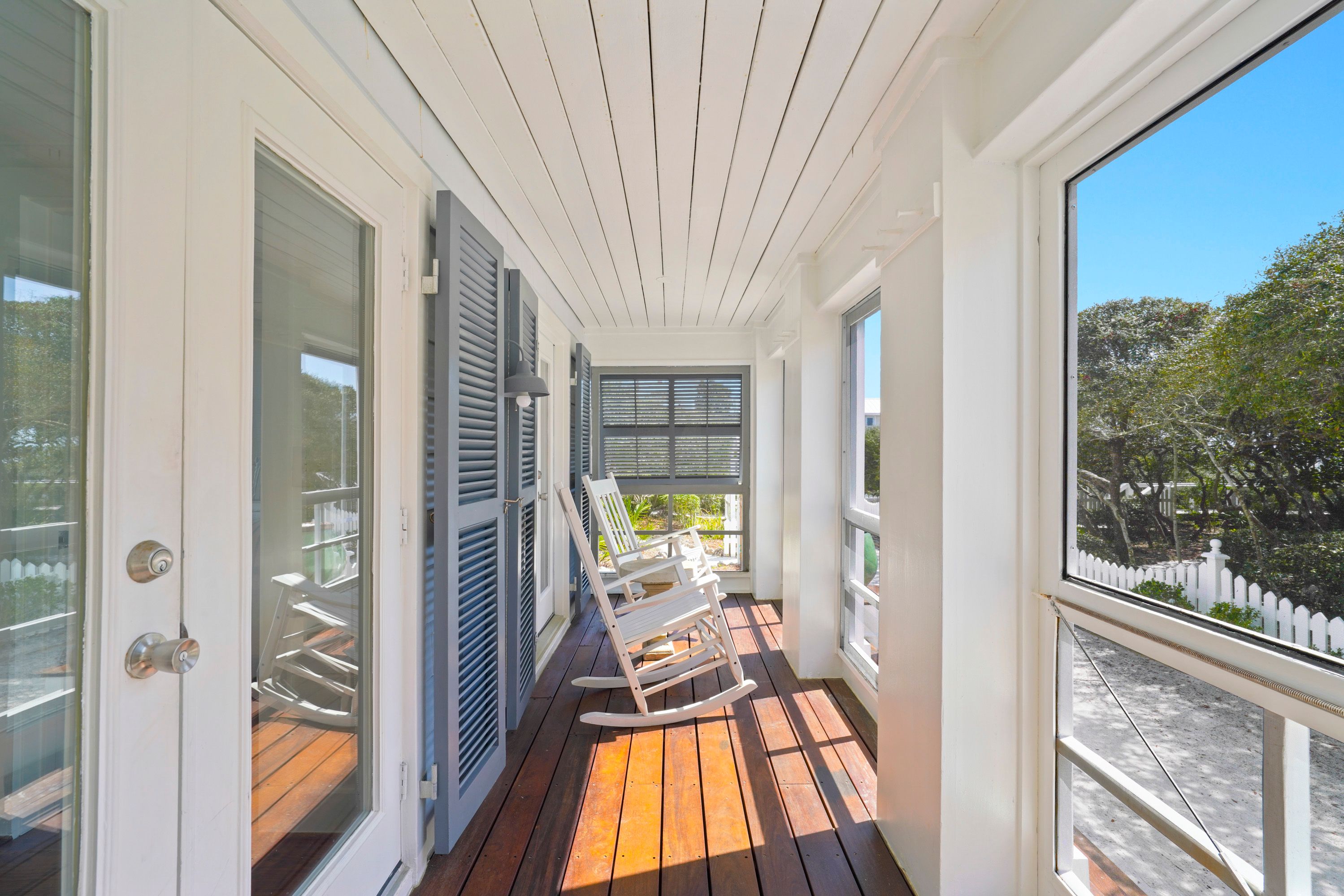 VIEW OF OUTDOOR PORCH WITH ROCKERS OFF BEDROOMS