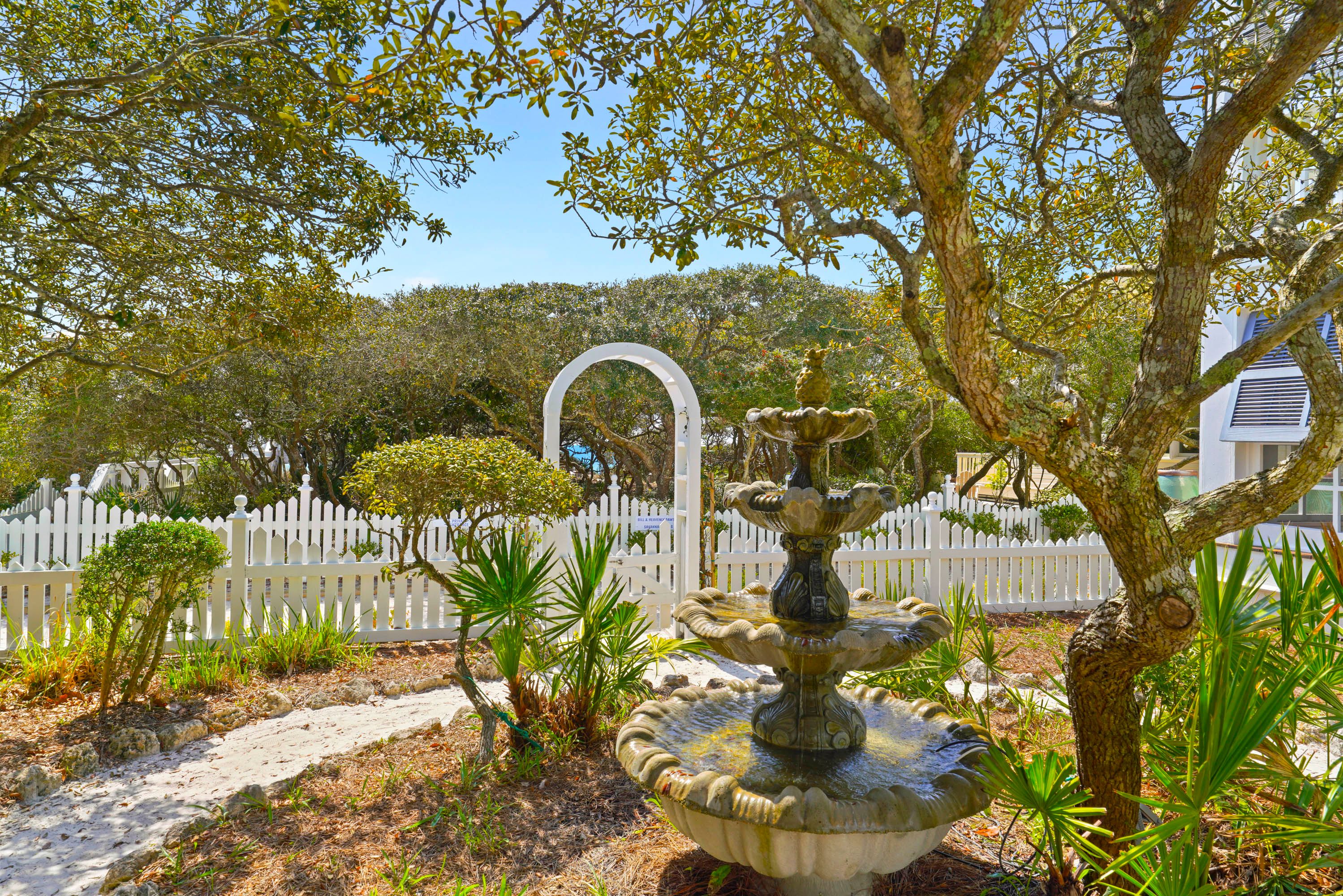 BEAUTIFUL PRIVATE GARDEN AREA WITH FOUNTAIN AND PATHS
