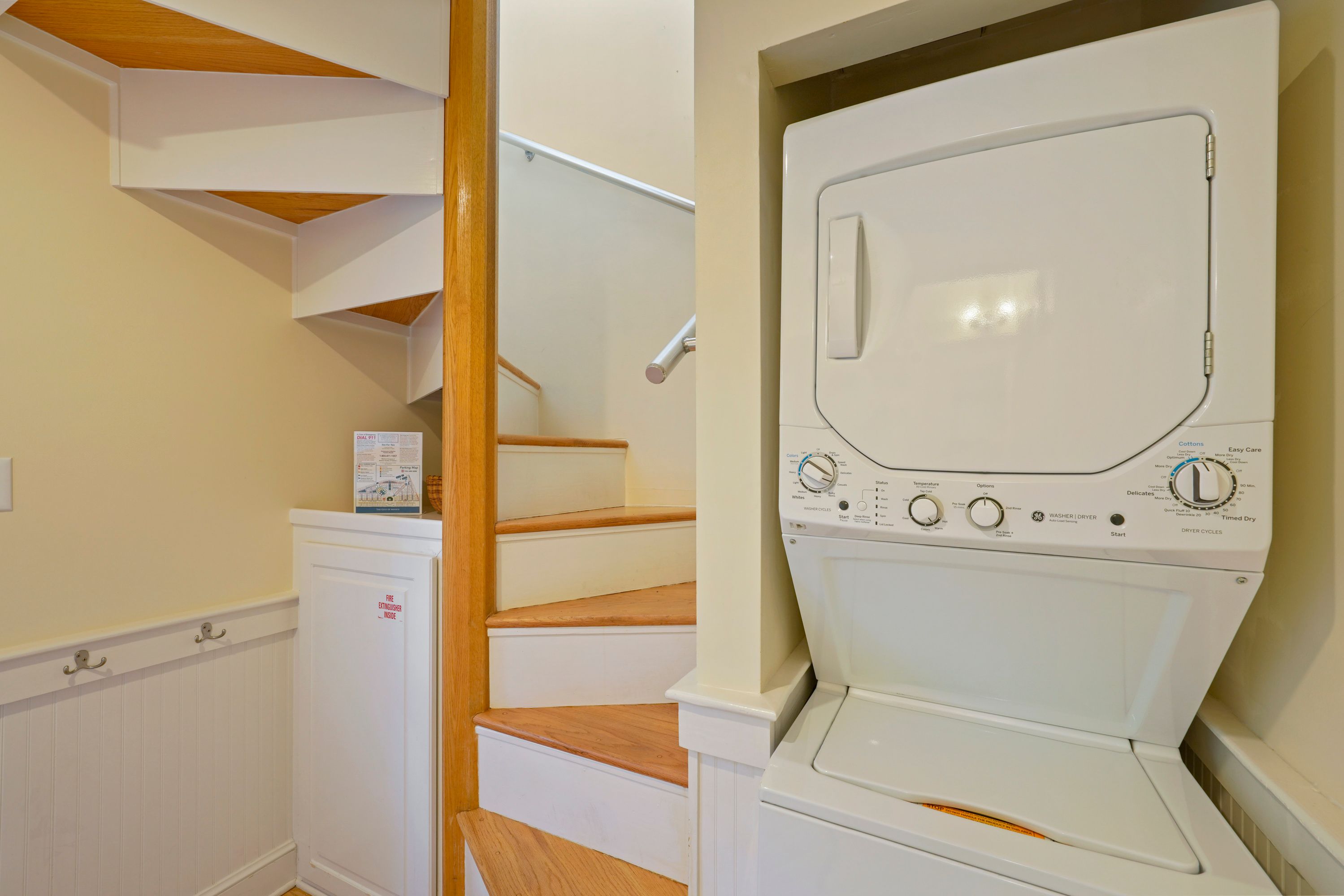 STAIRCASE, WASHER AND DRYER IN FOYER SPACE