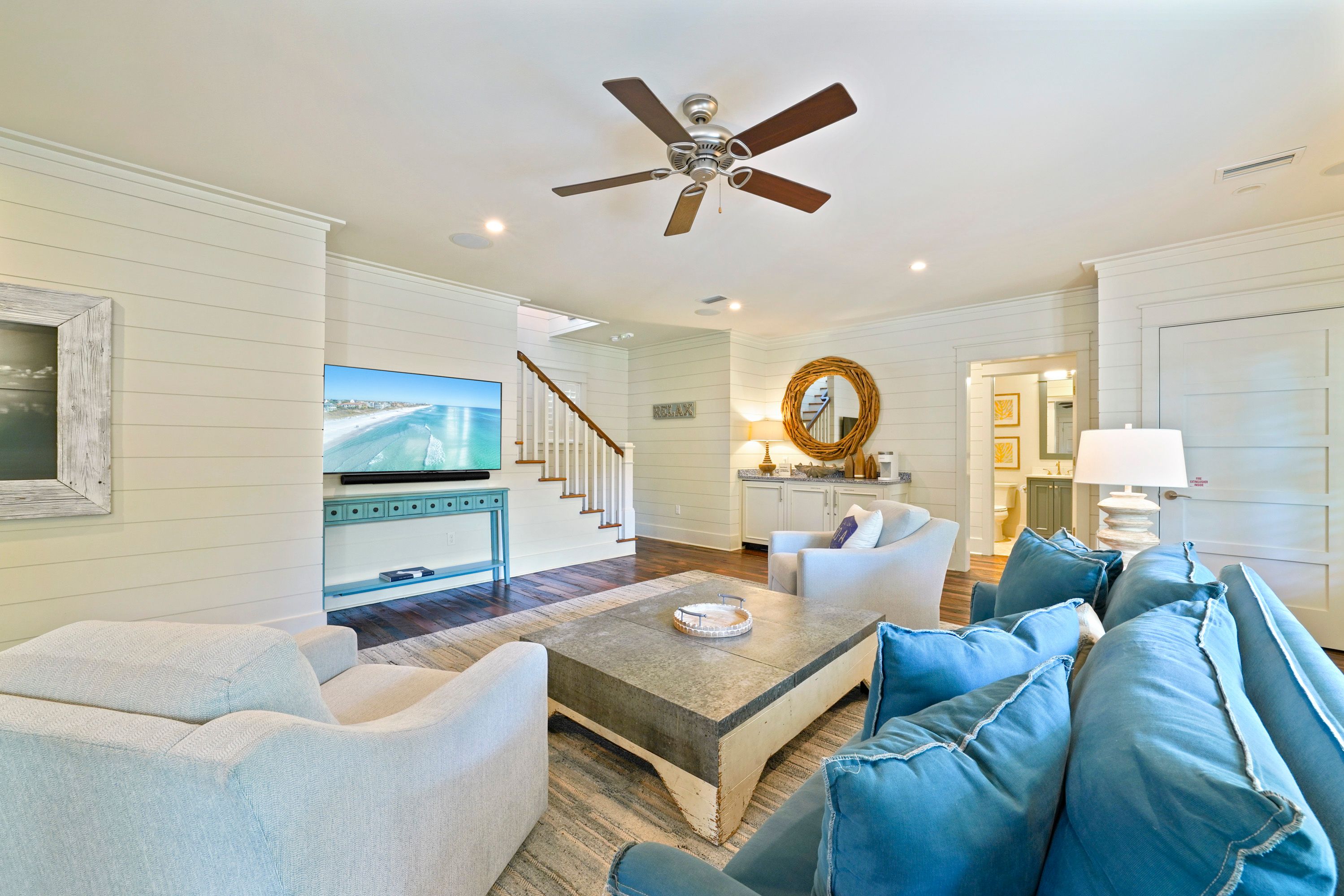 SECOND FLOOR LIVING AREA WITH LARGE FLATSCREEN TV
