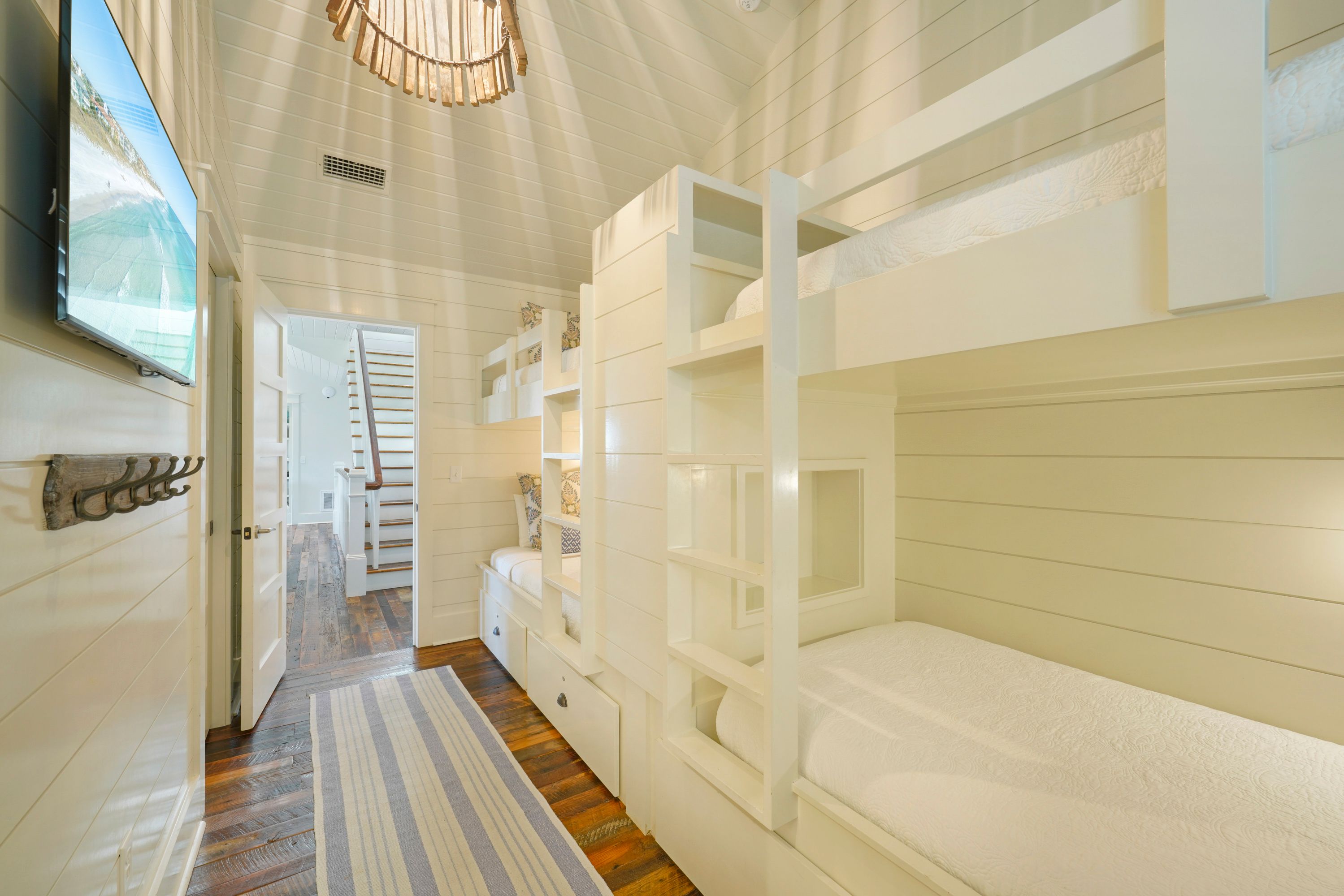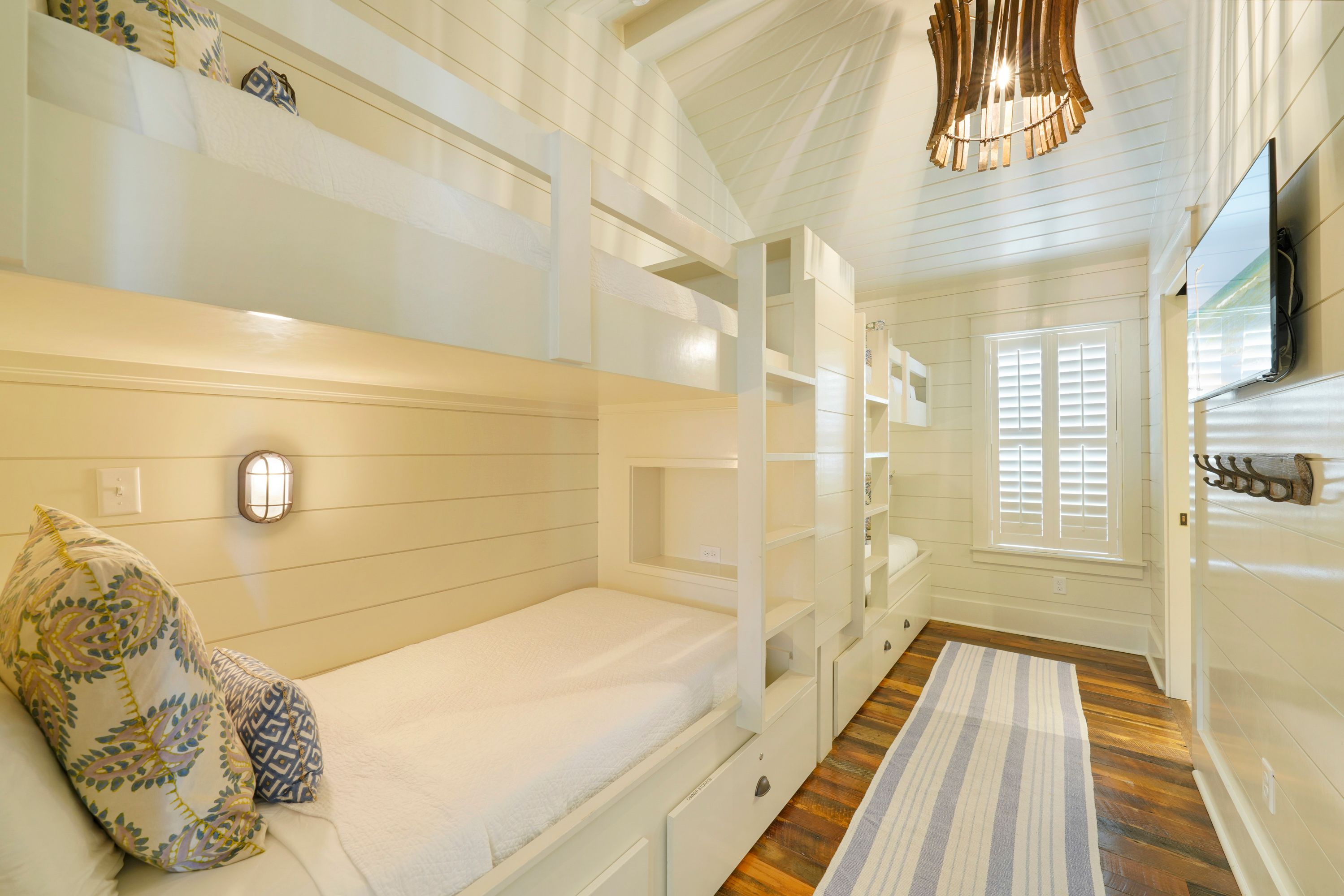 FIFTH BEDROOM, CUSTOM BUILT IN BUNK /W MOUNTED TV & STORAGE