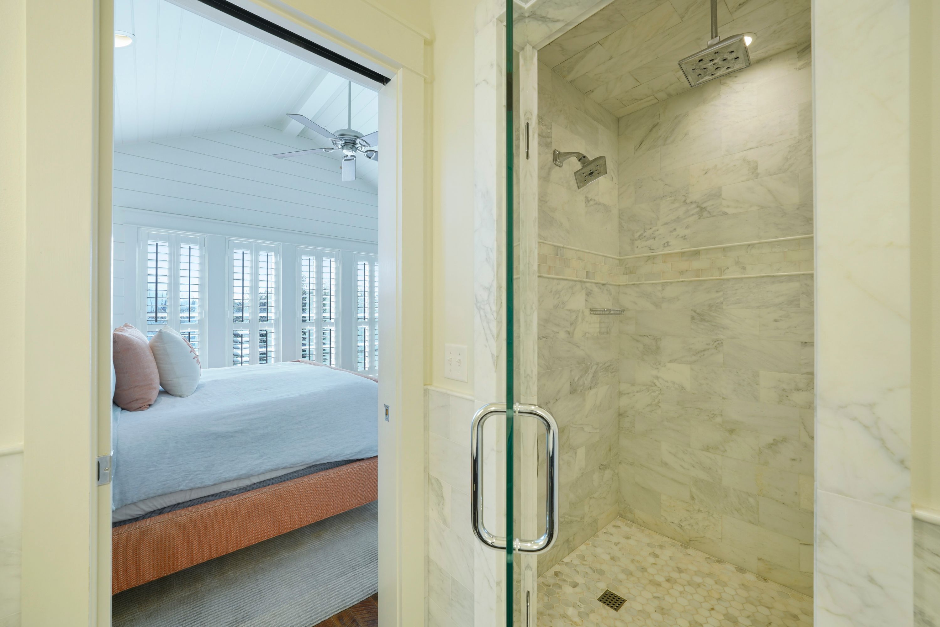 KING PRIVATE MARBLE BATHROOM, DUAL VANITY, WALK IN SHOWER