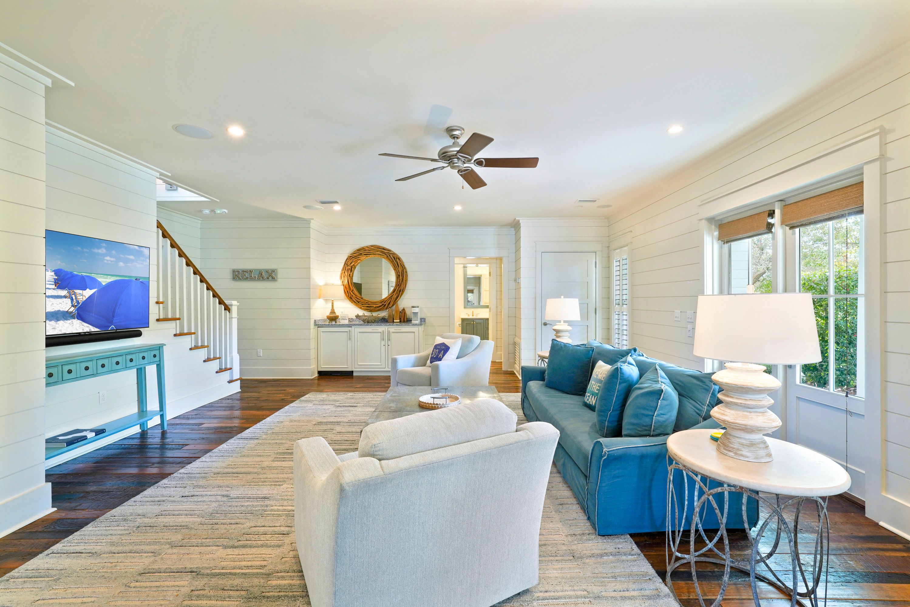 FIRST FLOOR LIVING ROOM W LARGE FLATSCREEN