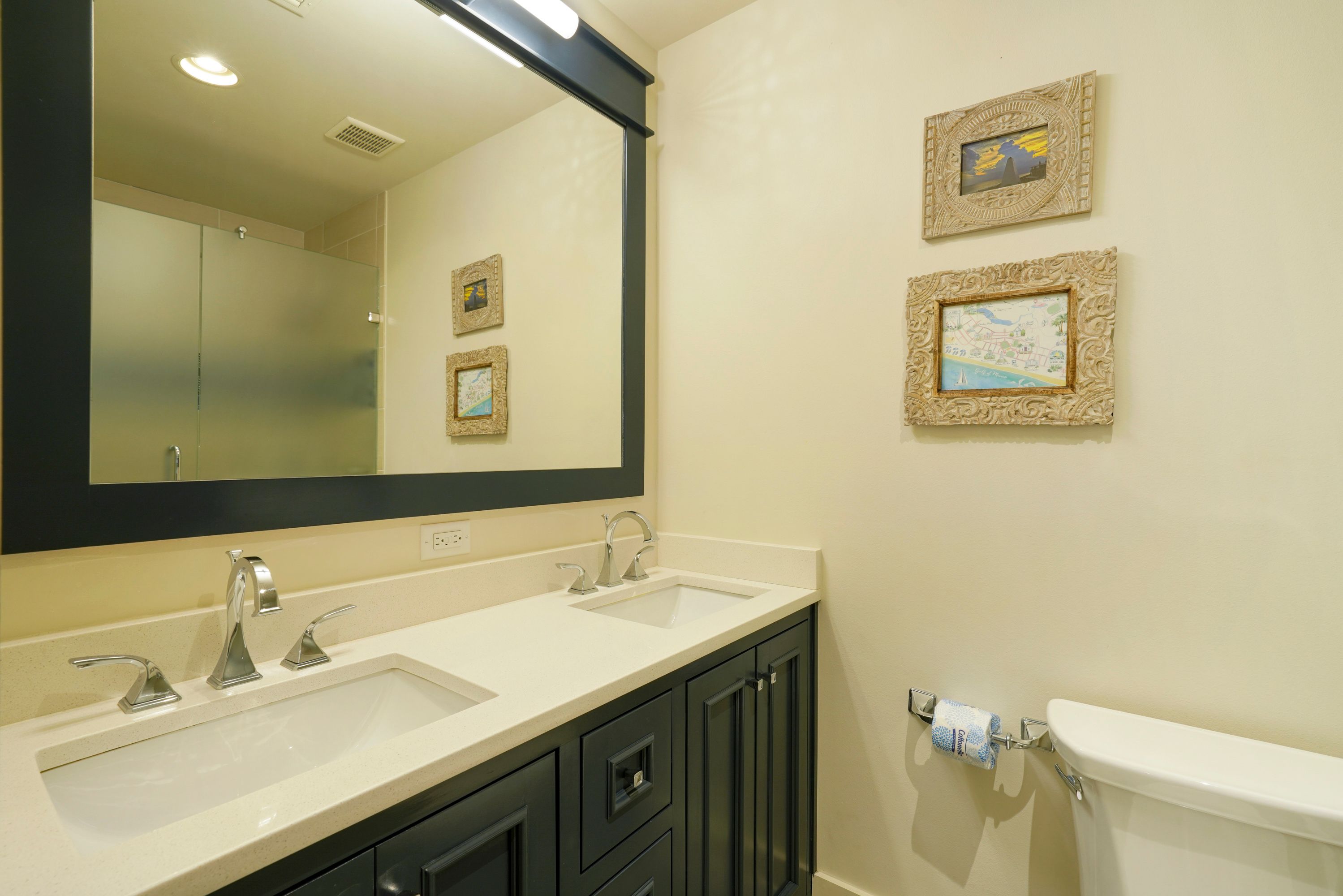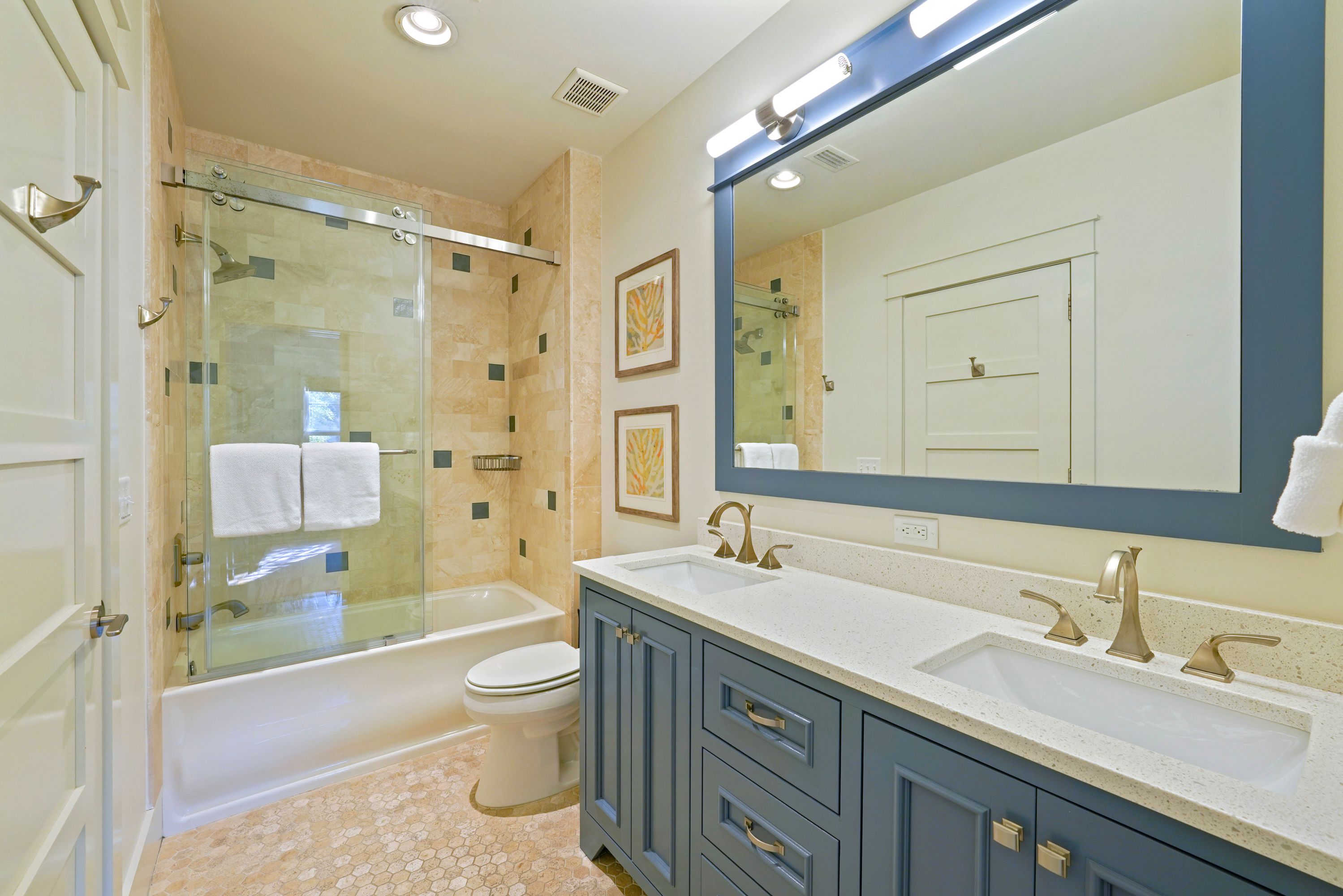 BUNK ROOM PRIVATE BATHROOM W/DUAL VANITIES, WALK IN SHOWER