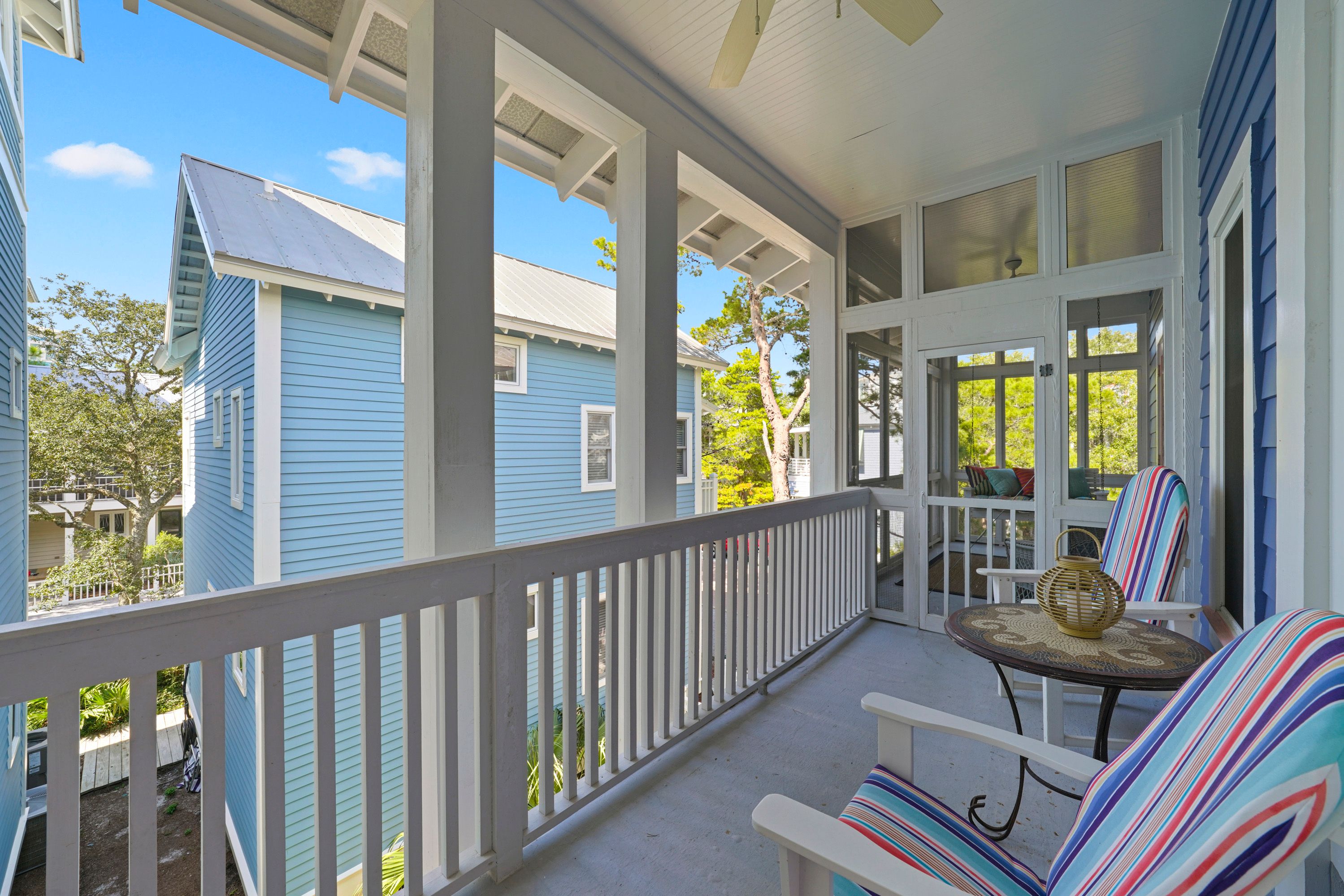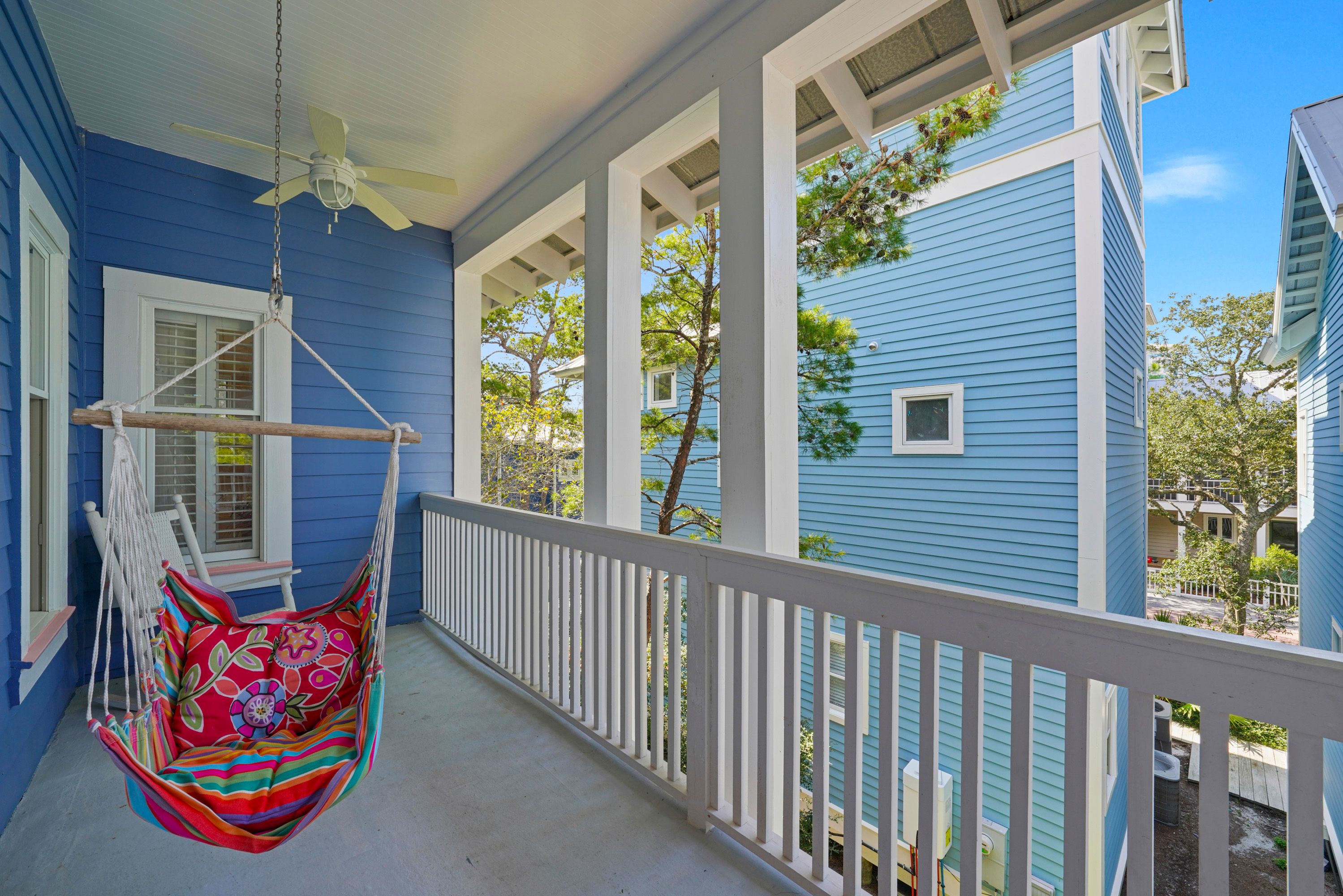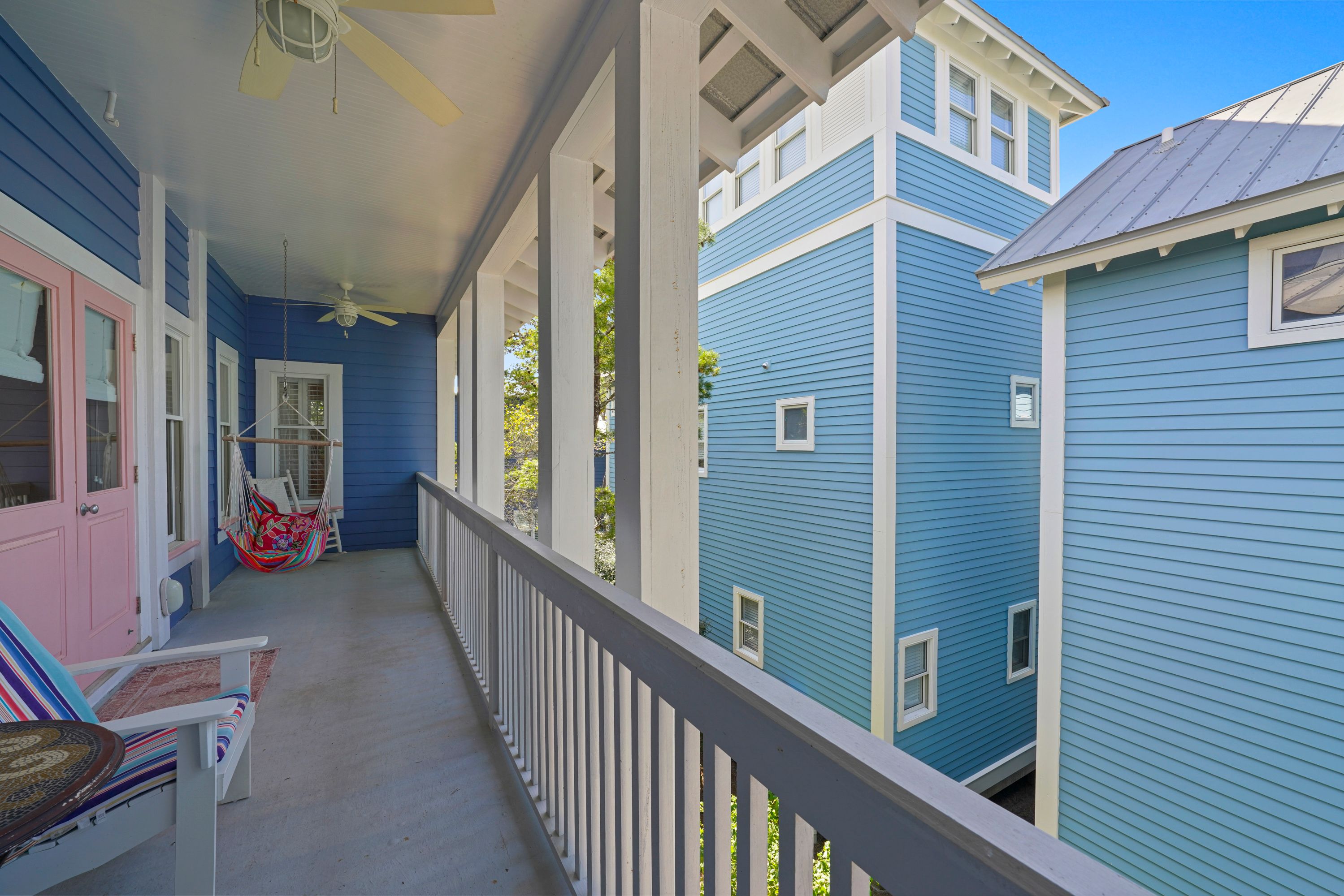LARGE BALCONY WITH FUN SWING AND SEATING