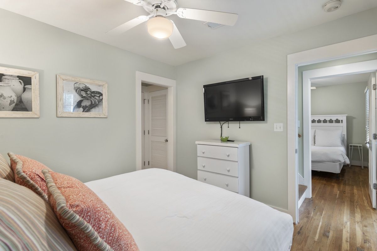 SUITE II FIRST BEDROOM DOWNSTAIRS WITH FLATSCREEN TV