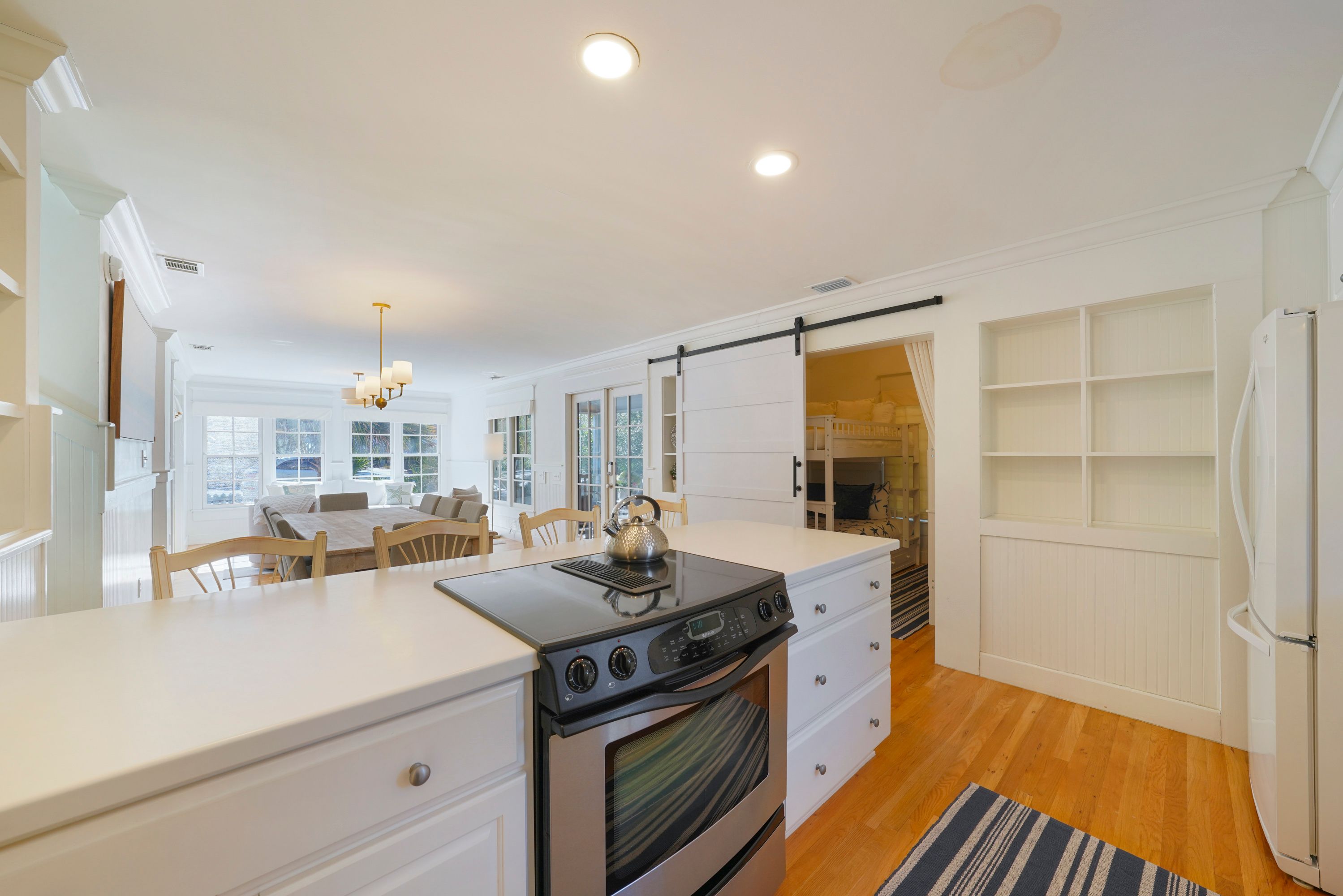 BONUS BUNKROOM WITH 2 DOUBLE BUNKS, SLEEPS 4; BARN DOOR