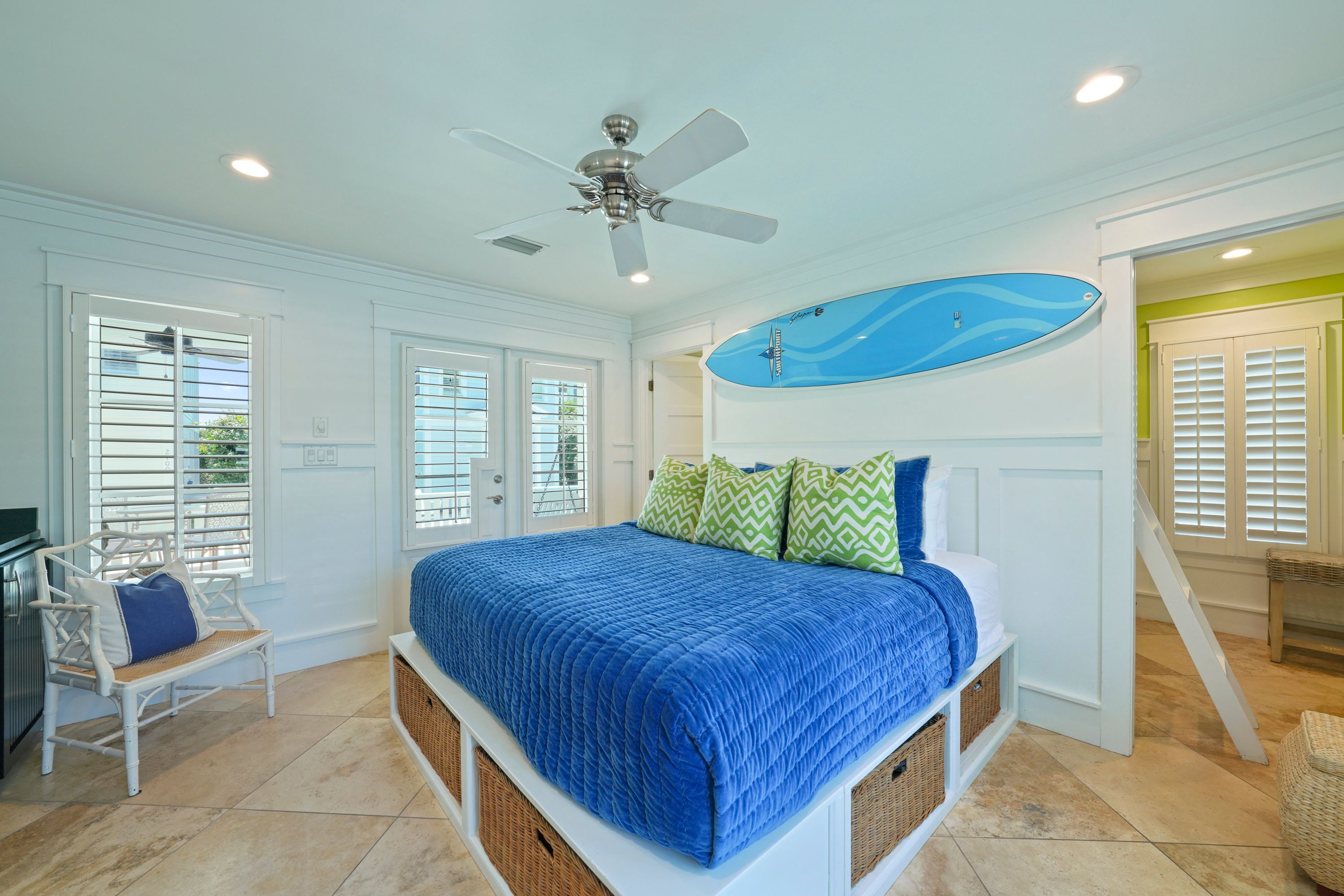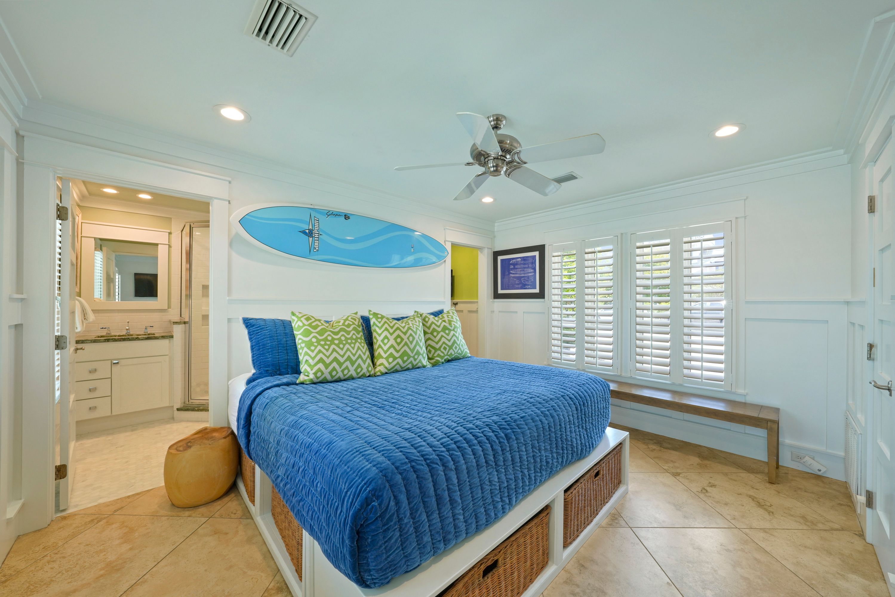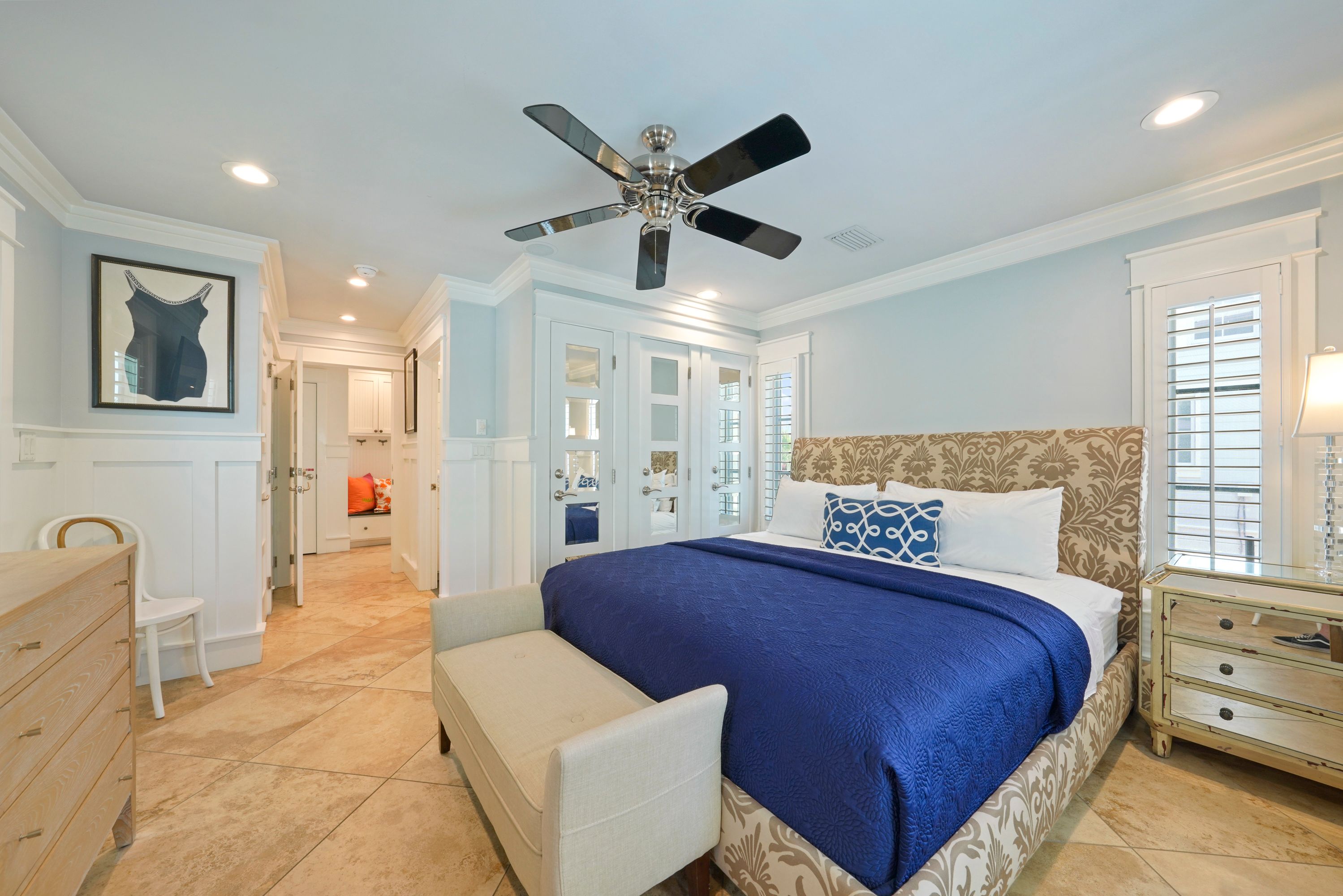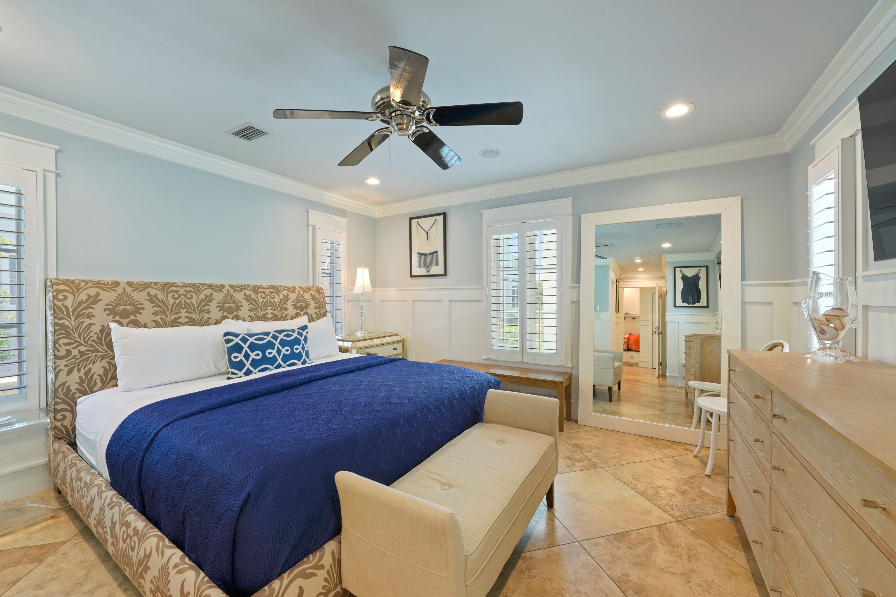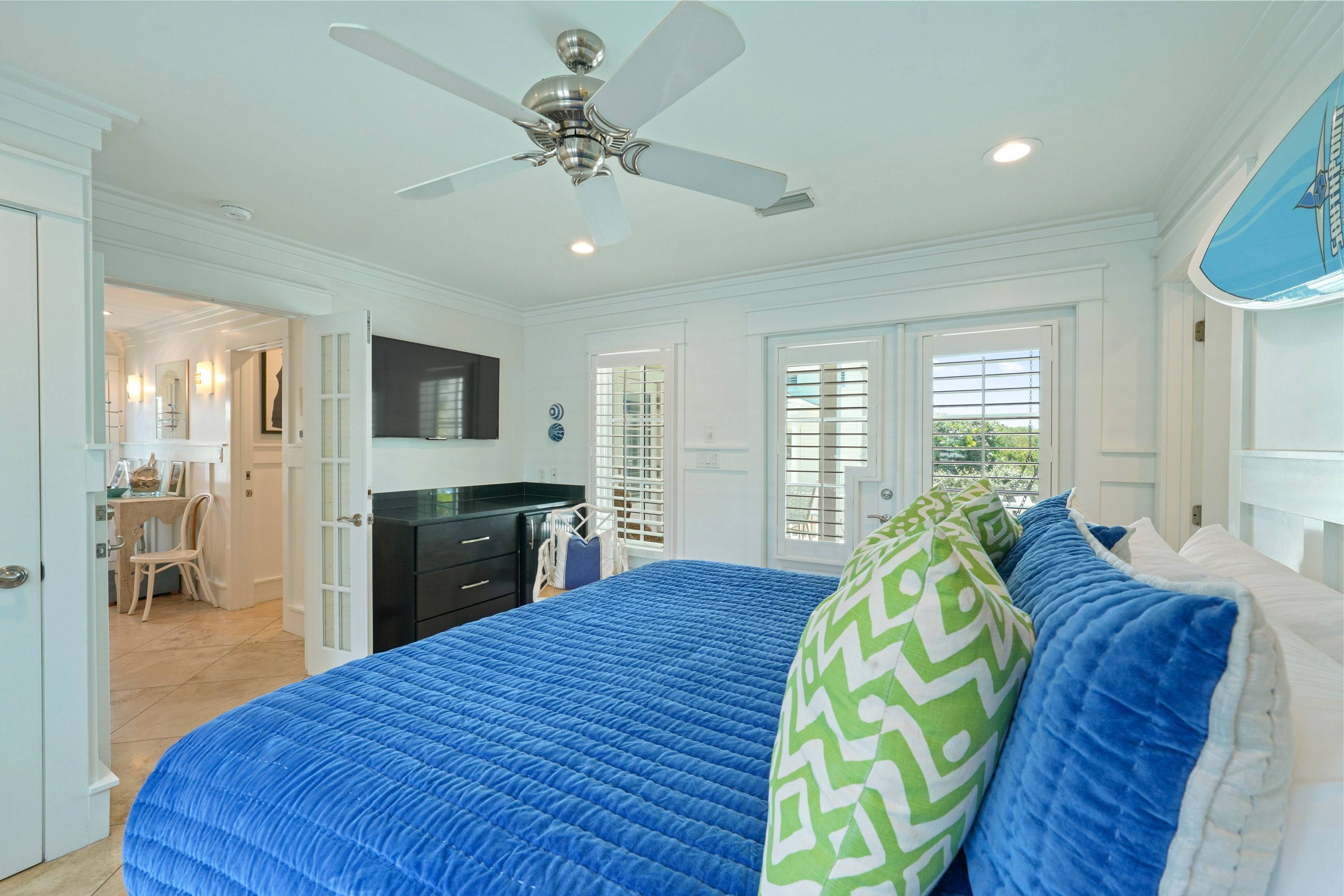 FIRST BEDROOM DOWN, KING W/ENSUITE BATH& PATIO ACCESS